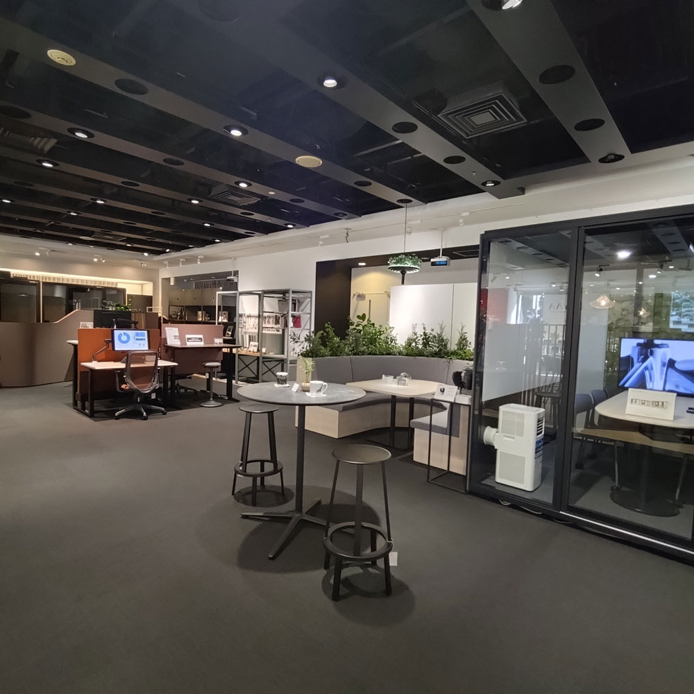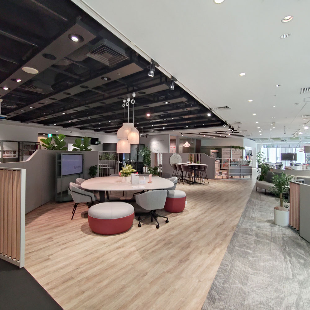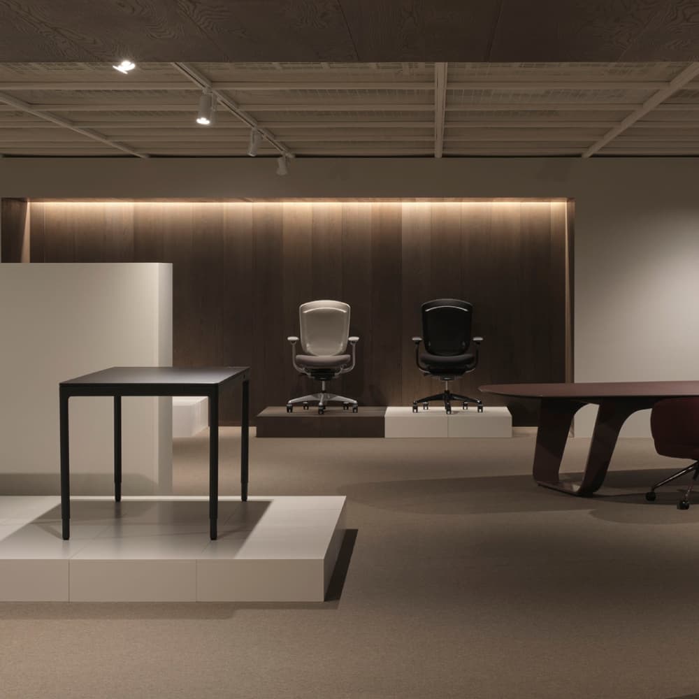 チェアやデスク、収納、ワークブース、柔軟にデザインするモジュール家具などを展示し、実際の使用環境を体感できます。