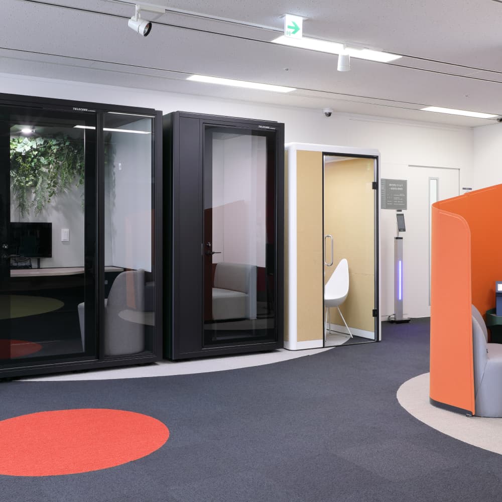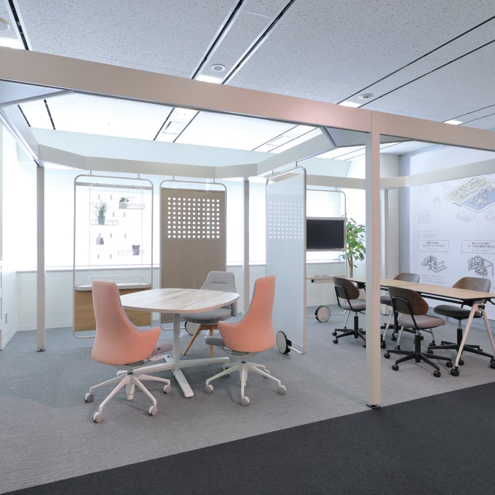 オフィス家具からワークブース、パーティション、レイアウト自在のモジュール家具まで幅広く展示し、実際に触れて試すことができます。