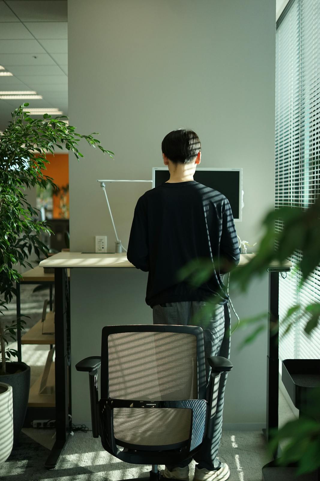 オフィス内のワークステーション40席中21席に、上下昇降式のデスクを採用
