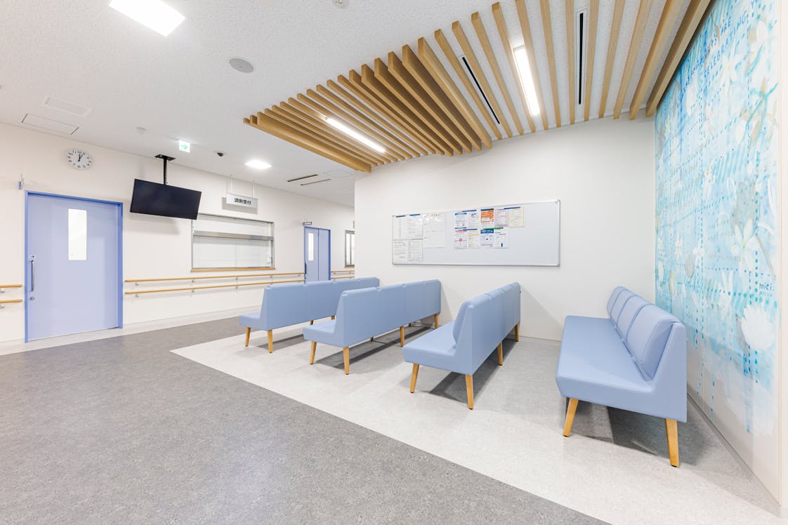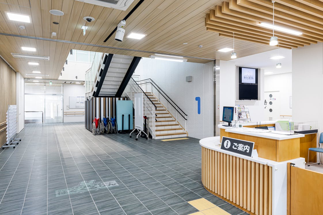 新施設は、バリアフリーの設えとなっており、各階に設置した「赤ちゃん・ふらっと」(授乳やおむつ替えができるスペース)や「バリアフリートイレ」など赤ちゃんから高齢者まで、誰もが安全に安心して利用できる配慮がなされております。また、内装や家具には明るい色彩や木目調を採用し、インテリアグリーンを配置するなど、ポスピタリティーを感じる、明るく心地よい空間が構築されています。加えて、眺望を楽しんだり、お子様を遊ばせることができる屋上庭園が整備されています。身体的・精神的に不安のある状況を、少しでも緩和し市民の皆様が健康や子育てについて、安心して相談利用でき、拠り所となる支援を目指しています。