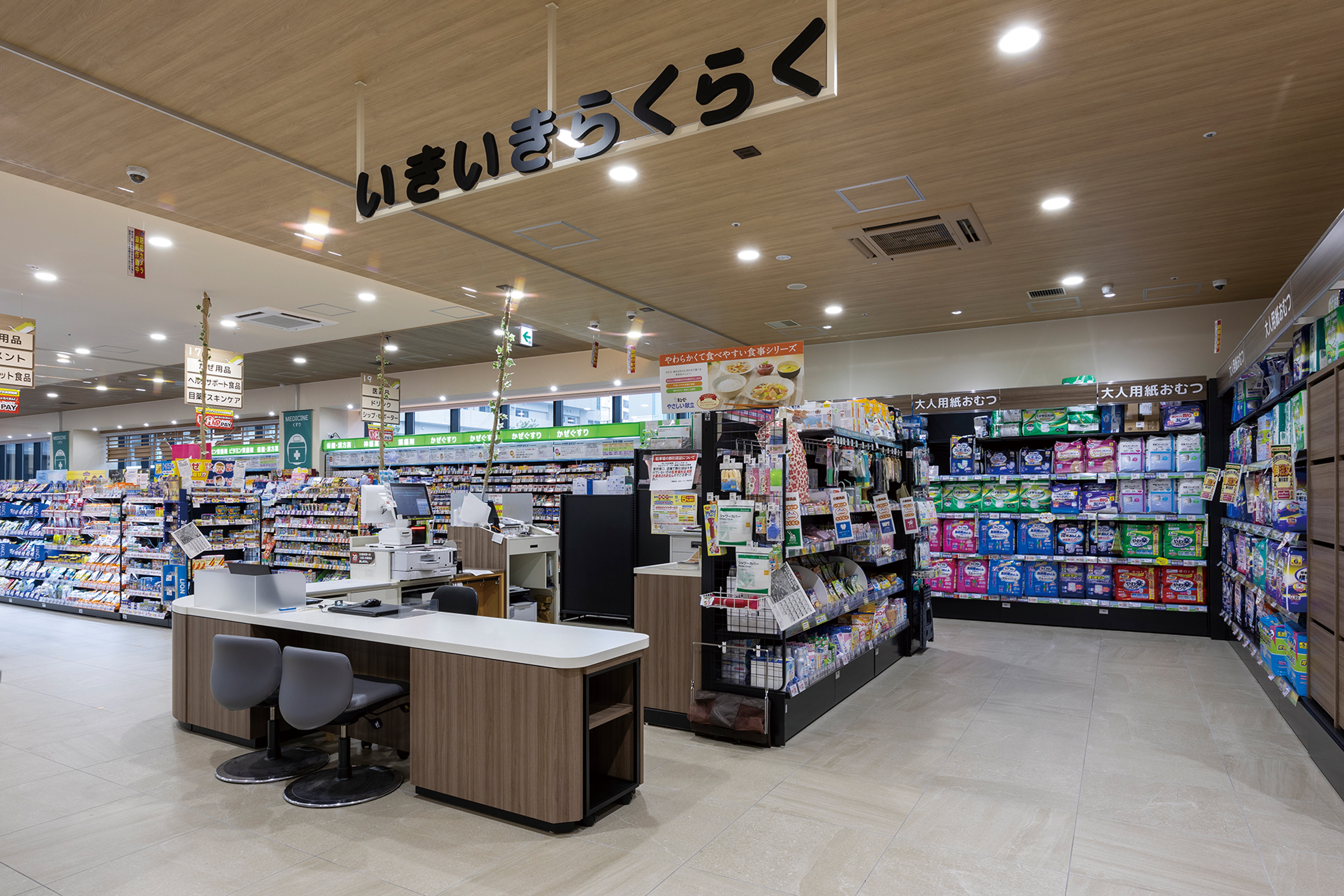 総合医療モールに調剤薬局併設店を出店。食品を充実させて地域住民の課題を解決
