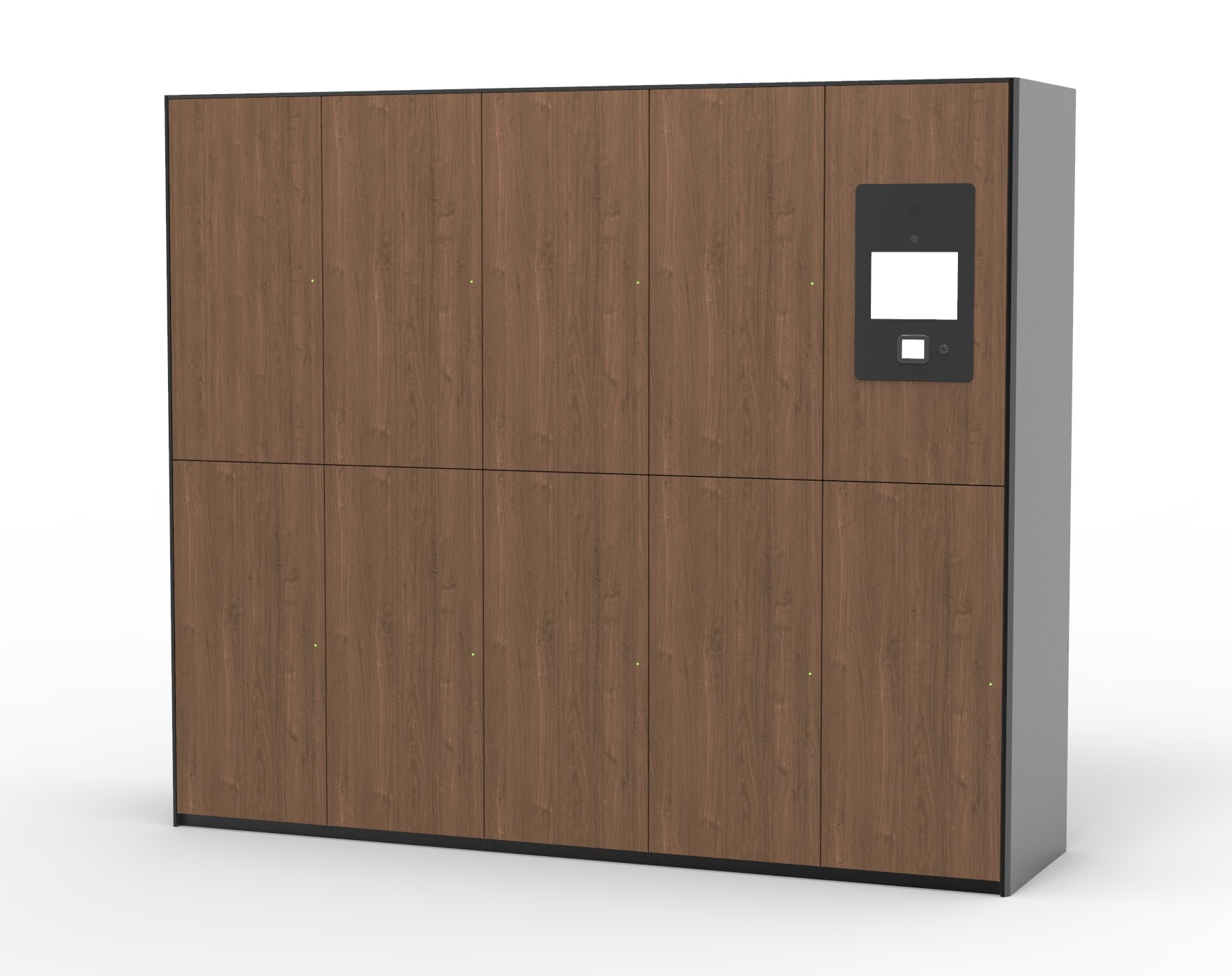 タッチパネル液晶ディスプレイ、多言語表示・音声対応(日本語、英語、中国語、韓国語)、QRコード認証対応、電気錠制御、LEDによる利用状況表示