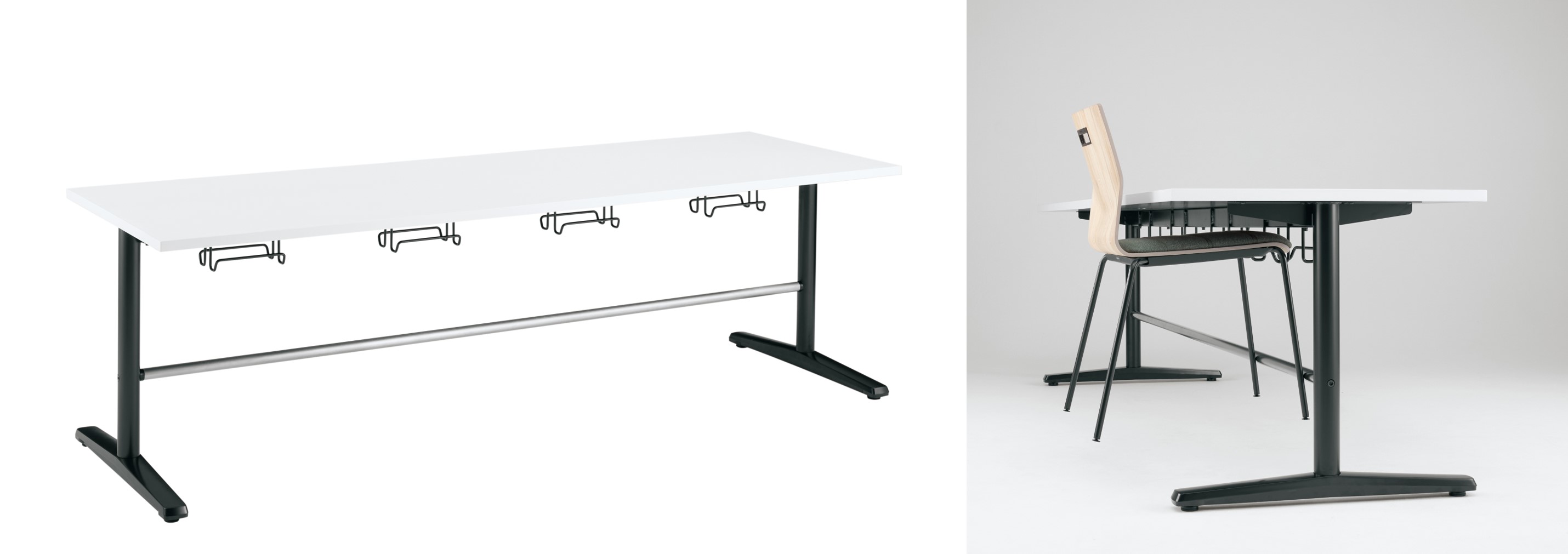 居心地が良く機能的な「はたらき心地」をかたちにするオフィスファニチュアシリーズ「Lives(ライブス)」の「Lives Meeting Table」に、清掃性に優れたハンギングタイプを新たにラインアップに加え、2025年11月より発売します。ハンギングタイプは、イスを天板の下にハンギングすることができ、床面のモップ掛けやロボット掃除機の走行がしやすいなど清掃性に優れています。また、既存の「Lives Meeting Table」には、天板と脚ともに落ち着いた色味のライトグレージュとダークグレーを追加しました。同系色のチェアとも相性が良く、食堂やカフェ空間などに適しています。