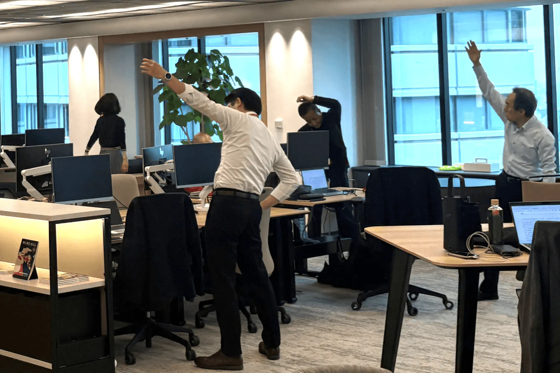 オカムラでは、「社員一人ひとりの心身の健康が、組織の力を高める」という考えのもと、日常の中で"身体を動かす習慣づくり"を推進しています。健康保険組合とも連携し、職場・自宅を問わず、誰もが楽しく継続できる運動機会を提供しています。