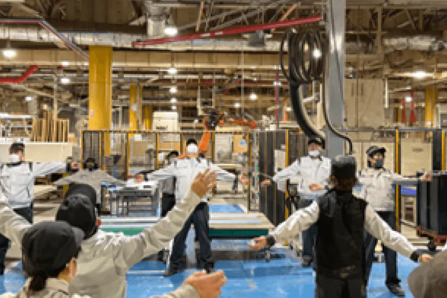 毎朝全社一斉にラジオ体操やモーニングストレッチを実施しています。特に生産拠点では安全第一と事故防止の観点から、身体や心をほぐして安全に作業へ取り組めるよう積極的に取り組んでいます。
