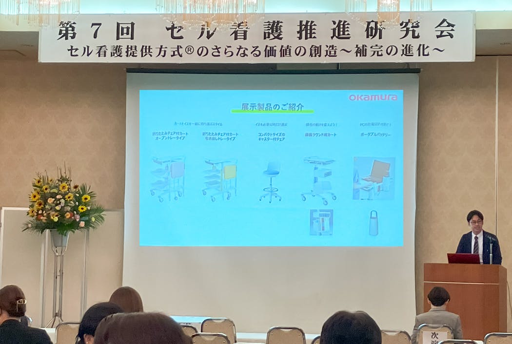 株式会社オカムラは、10月18日(土)~19日(日)の2日間にわたり、のがみプレジデントホテル(福岡県飯塚市)で開催された「第7回セル看護推進研究会」企業展示ブースに出展し、たくさんの方にナースカート・点滴スタンドを見て体験していただきました。