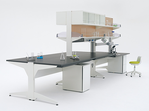 天板は耐薬品性にすぐれた「耐薬性天板」と汎用の「メラミン天板」をラインナップ。実験環境に応じて選択することができます。