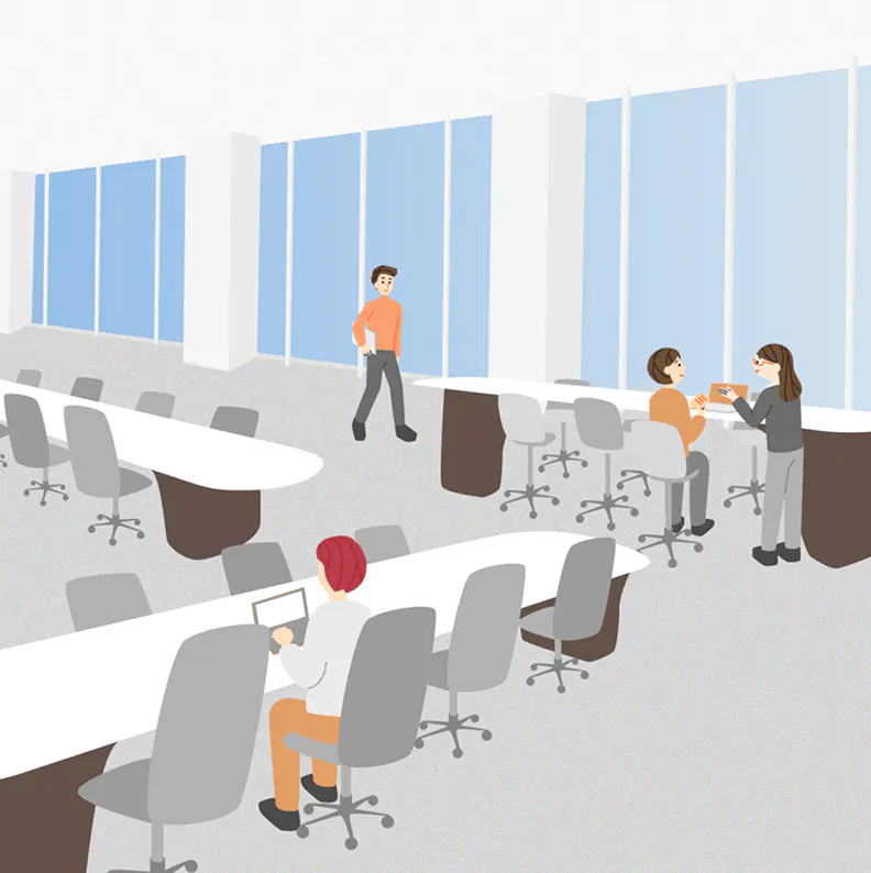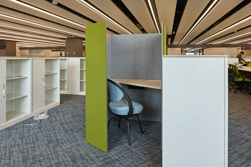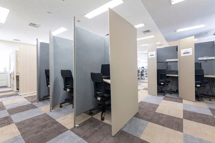 個別ブース、ローパーティションで仕切られたスペースなどを整備することにより、周囲の雑音や他人からの視線も遮ることができるので、機密性の高い業務にも対応可能です。