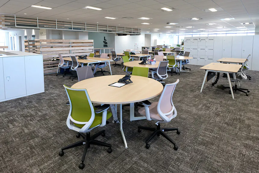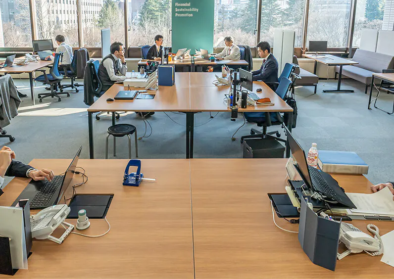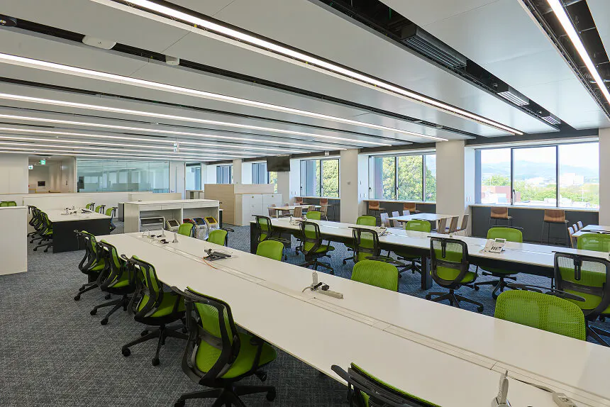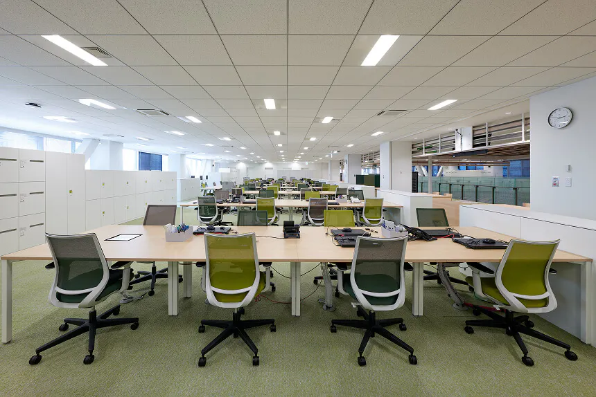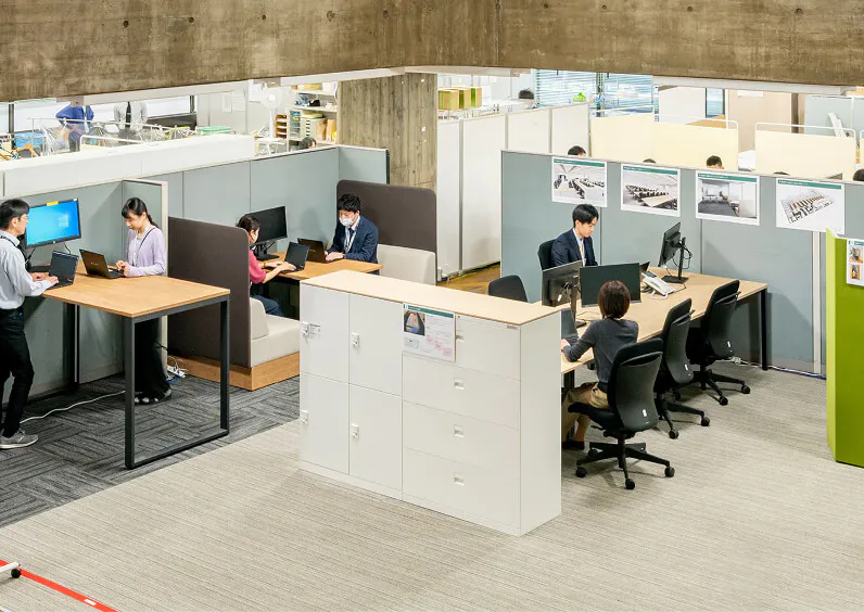 個人用の固定席から執務エリア内での共有座席にすることで、デスクをきれいに使うという意識が高まります。