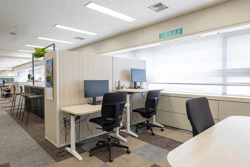 企画や総務部門、DX推進部門などデスクワークが中心で対人業務が少ない部門の方が導入しやすい傾向にあります。窓口部門での導入は難しいと思われがちですが、窓口カウンターを当番制で利用することも多く、自席利用時間が限定的となるため効率的な空間運用を目的としてフリーアドレスが導入されています。また、人員増となり執務空間の拡張が難しいという状況でも、スペースを共有化できるフリーアドレスは効果があります。