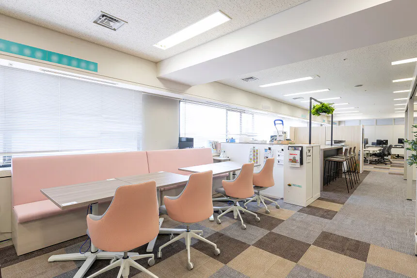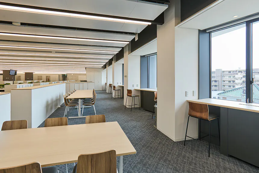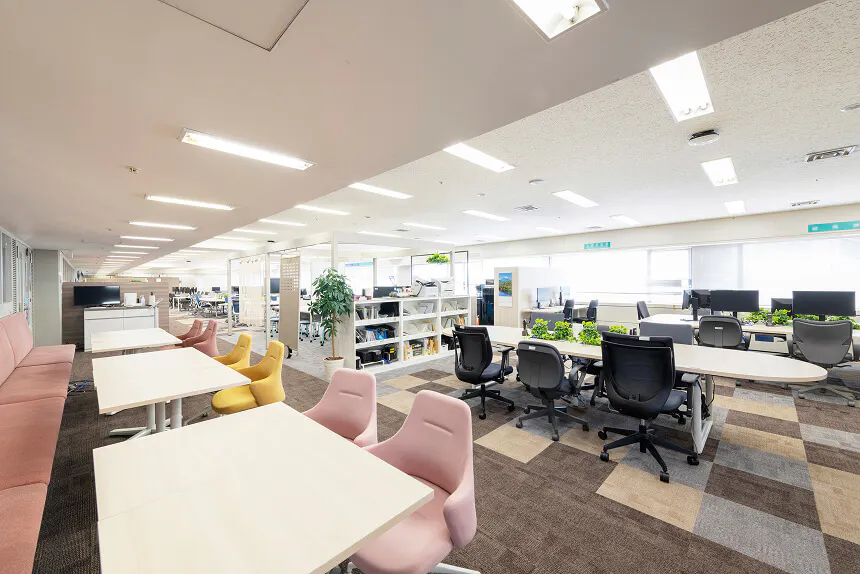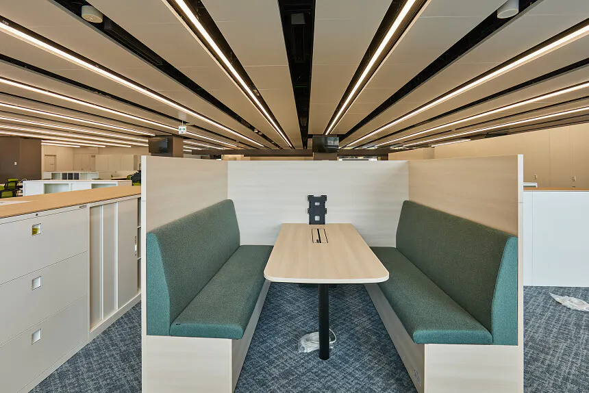 在籍率に見合った席数を効率的に配置することができるので、固定席を採用していた時と比べて空いたスペースを様々な用途に有効に活用できるなどの効果が期待できます。