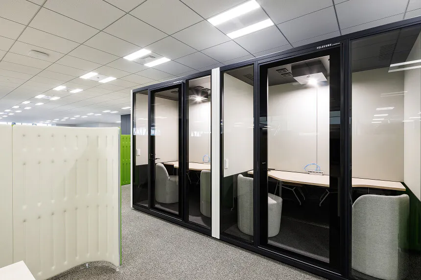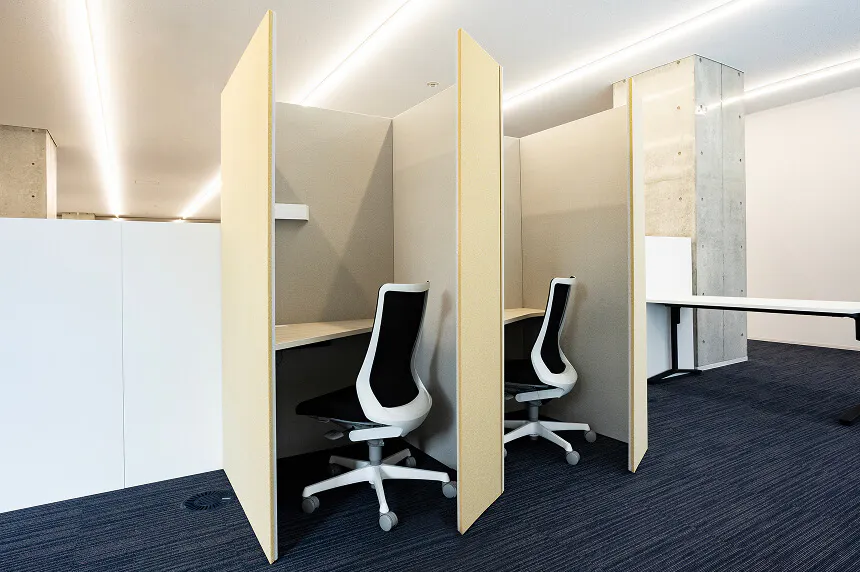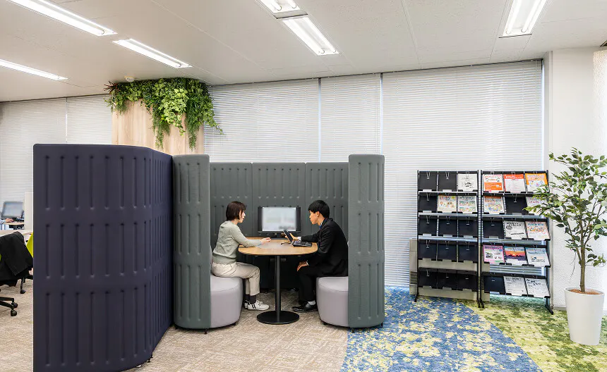 職員同士が外部の音や視線を気にせず安心して話し合えるよう、遮音性のある面談スペースを設けます。これにより、気兼ねなく相談できる環境が整い、関係構築が促進されます。