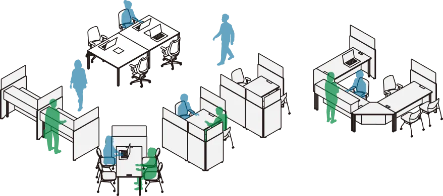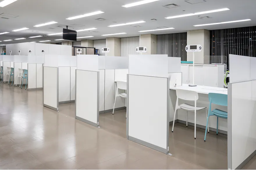今後の窓口業務のデジタル化に伴い、来庁者数の減少や業務効率化、運用の大幅な見直しが見込まれています。状況の変化に応じて柔軟にレイアウト変更が可能な空間設計が有効です。