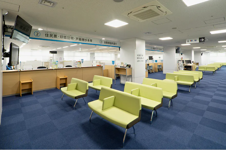 手続きに必要な情報を職員が聴き取りながら申請書を作成する「書かない窓口」の導入により、座って相談できるローカウンターの設置。