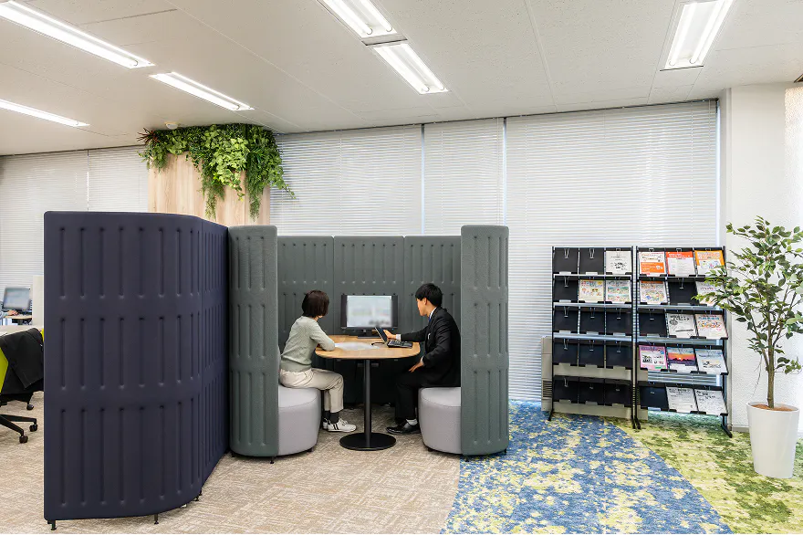 相談者の個人情報などが周囲に漏れ聞こえないように、遮音性や吸音性を備えたブースなど、プライバシーに十分配慮した個別空間が適しています。