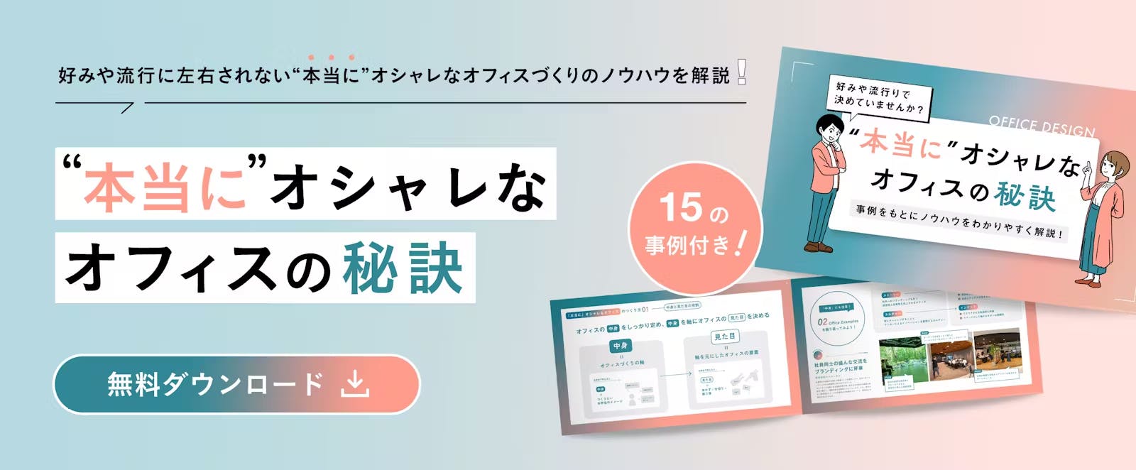 オフィスグリーンを活用したオシャレなオフィスの事例や、デザインのポイントをまとめた資料もご用意しています。ぜひこちらも参考にしてください。