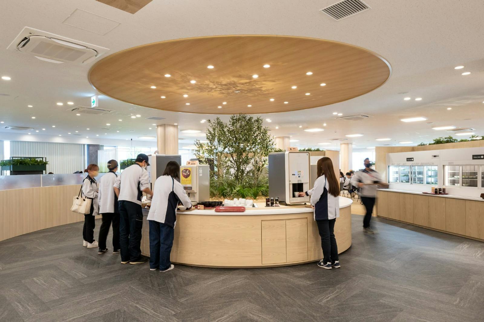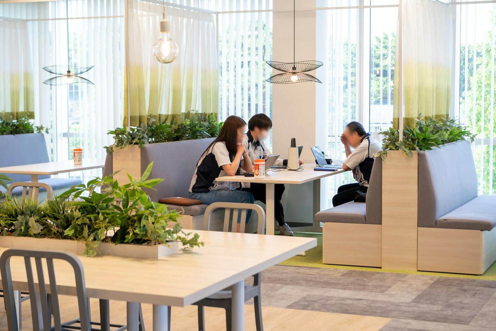 - グリーンを効果的に配置した心地よく過ごせる社員食堂