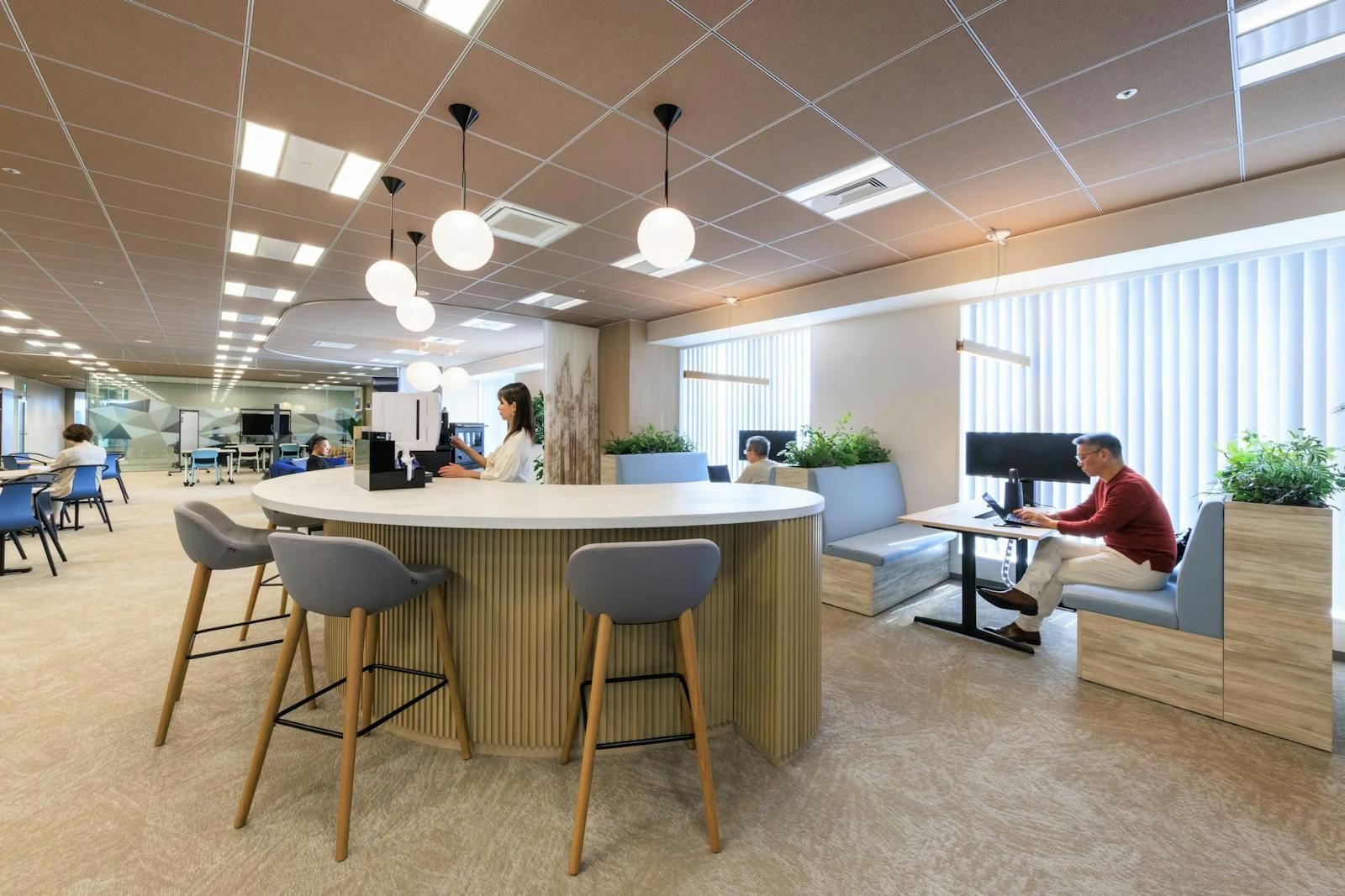 固定席+共有エリアで集中と交流を両立したオフィス