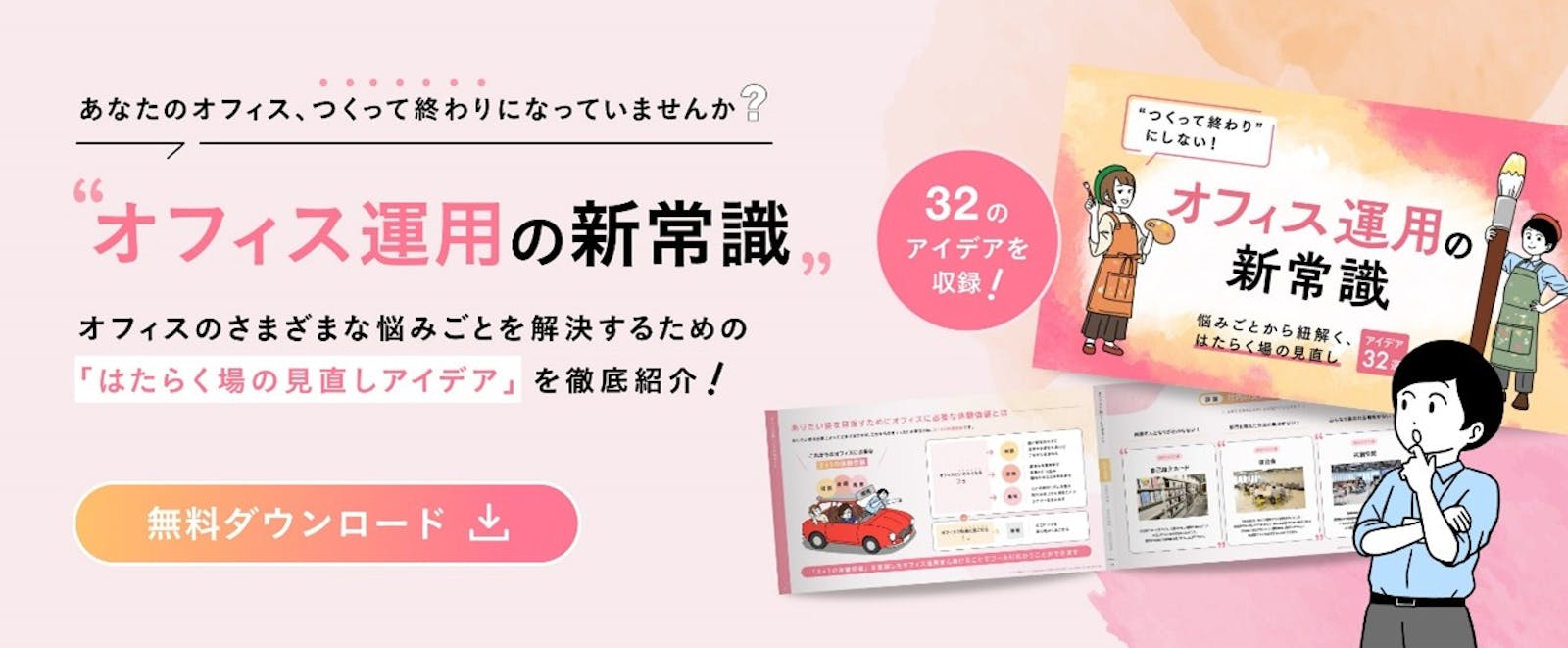 オフィスはつくったあとの運用と見直しがとても大切です。オフィス運用のよくあるお悩みを資料にまとめて紹介していますので、ぜひこちらもご活用ください。