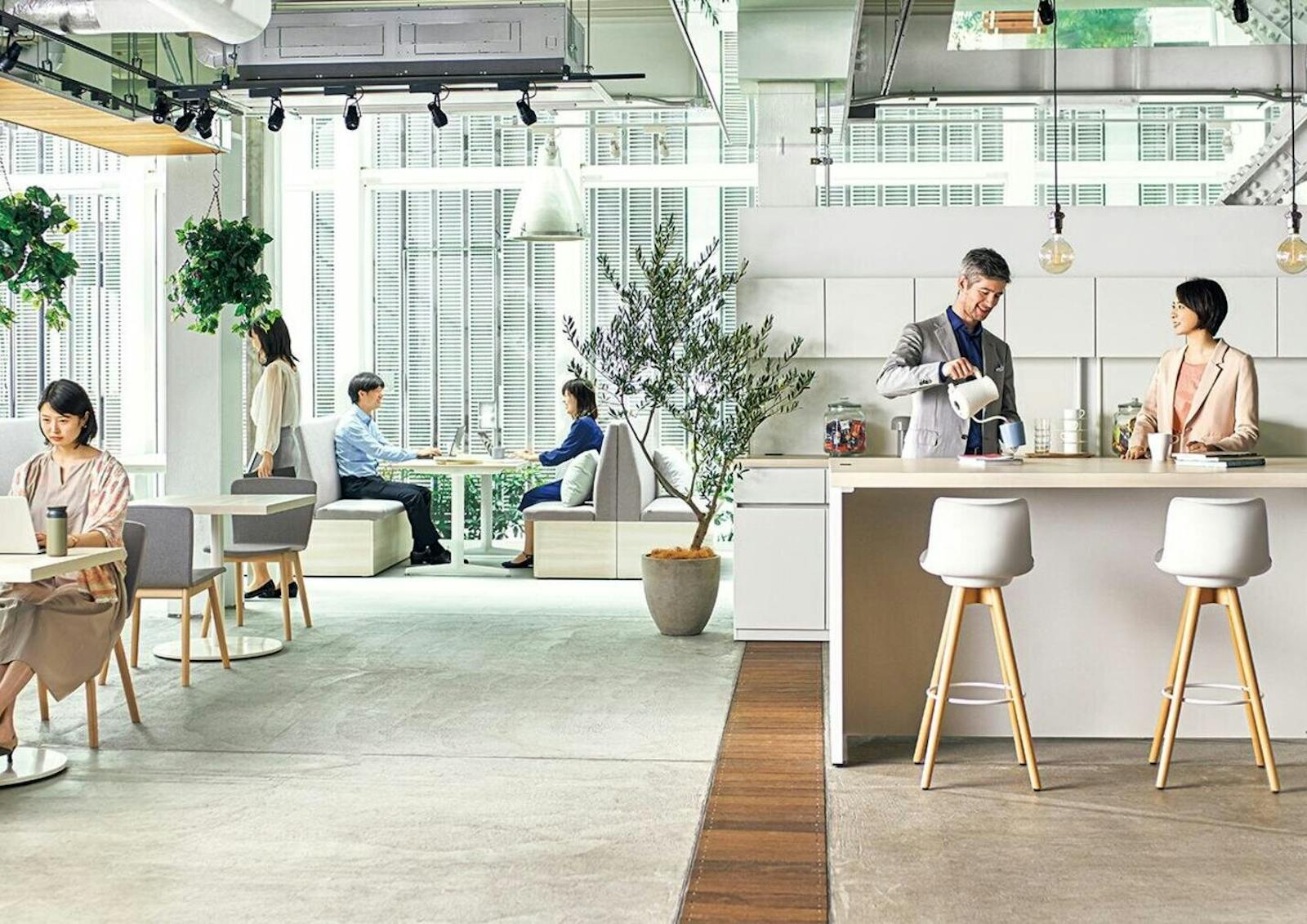 どうにも仕事が進まず、カフェスペースに移動してほっと一息。その時の作業や気分に合わせて働く場所を変える、自分で選択できる働き方へ。Alt Piazza(アルト ピアッツァ)は、オフィスの共有スペースを気持ちよく働ける場へと変えます。