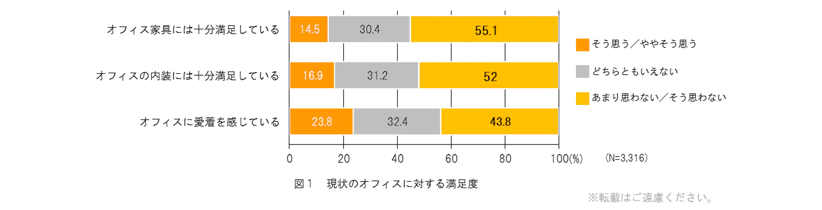 では、従業員の方々は、実際、どのくらい今のオフィスに満足しているでしょうか?