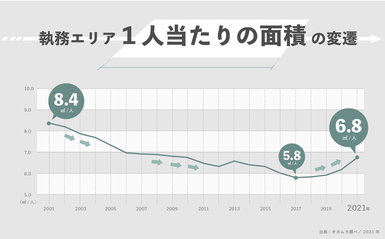 20年でどう変わった? オフィスの1人当たり面積の推移をデータで読み解く