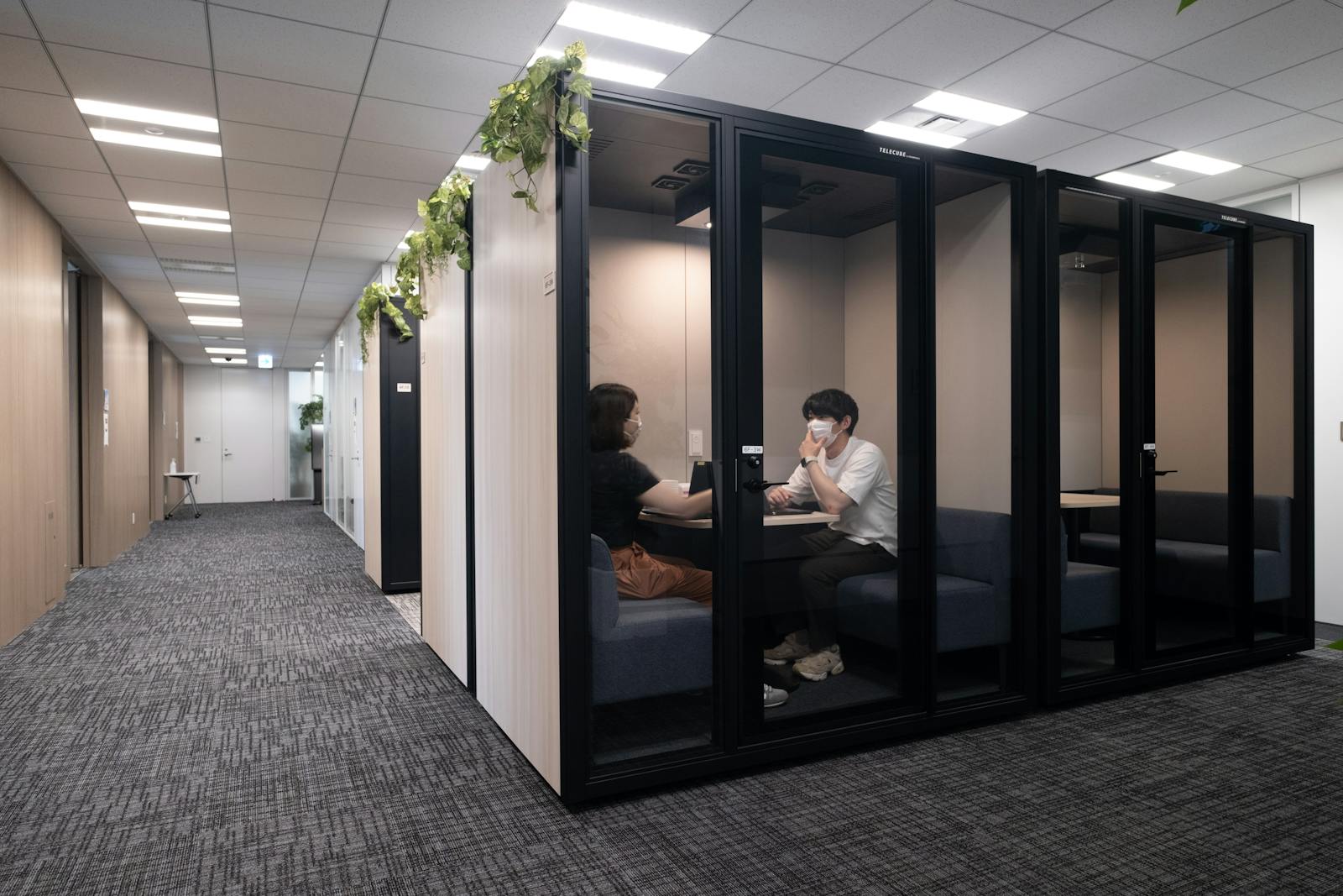 面談は少人数で行うのが一般的なため、それほど大きなスペースは必要ありません。ただし、仕事上の困りごとを聞くこともあるため、プライバシーを確保できるような個室が望ましいでしょう。最近では、大掛かりな設備工事を必要としないフルクローズ型ワークブースを設置する会社も増えてきています。