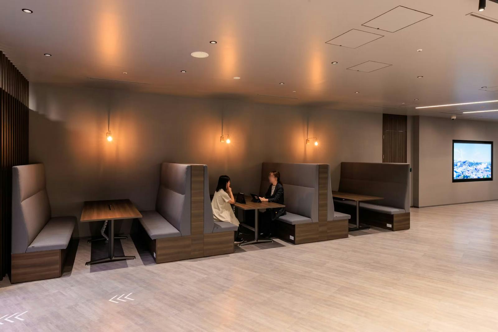 エントランスに「使える」機能を付加することで、単なる通過空間から、活用度の高い空間へと変化します。例えば、関西ペイント株式会社 様のようにギャラリースペースを設けたり、ファミレス席で簡単な打ち合わせができるようにしたりするなど、社員と訪問客の双方にとって利便性の高いデザインが理想です。
