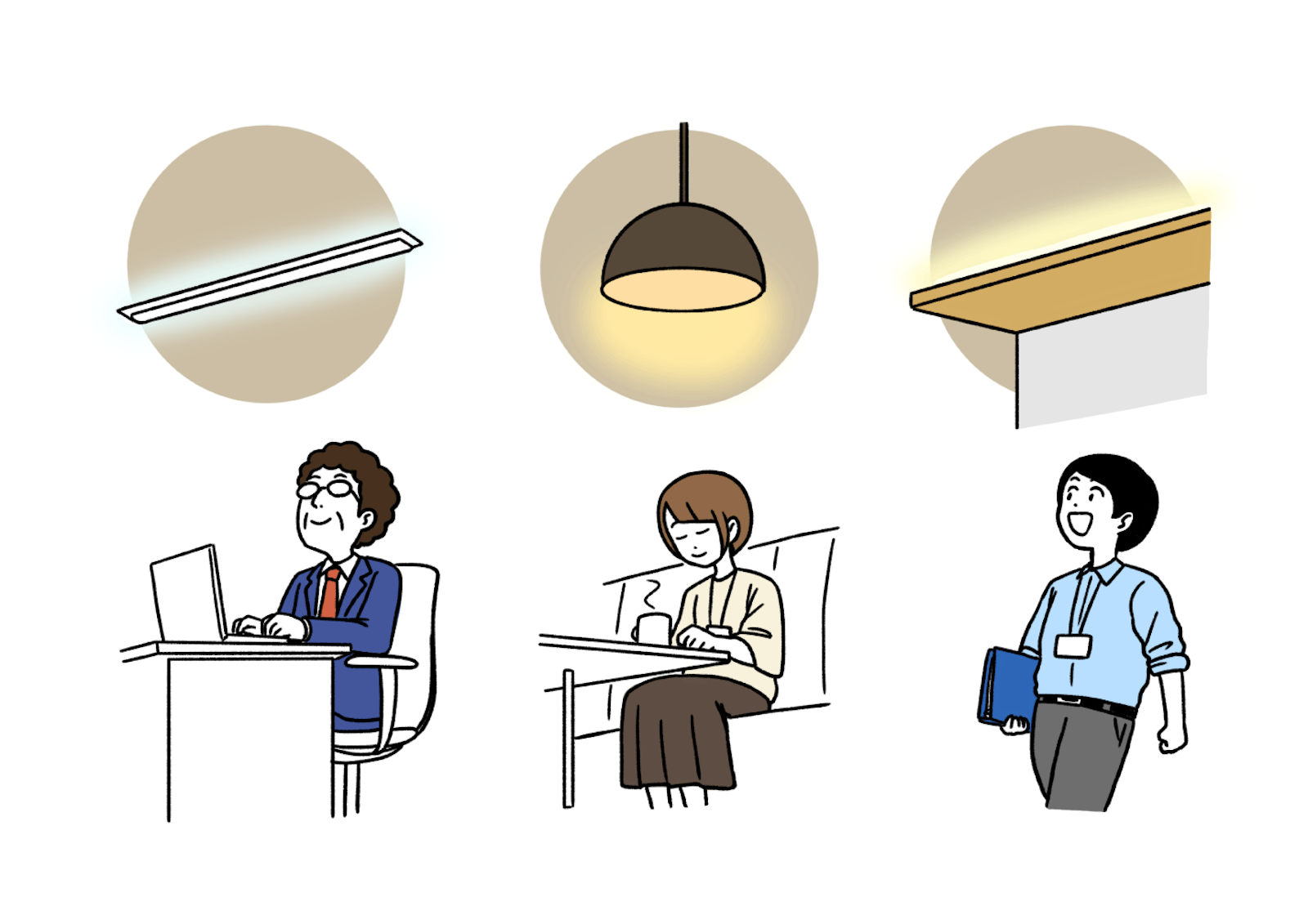 - 作業と空間の明るさを分けて設計する「タスク・アンビエント照明方式」