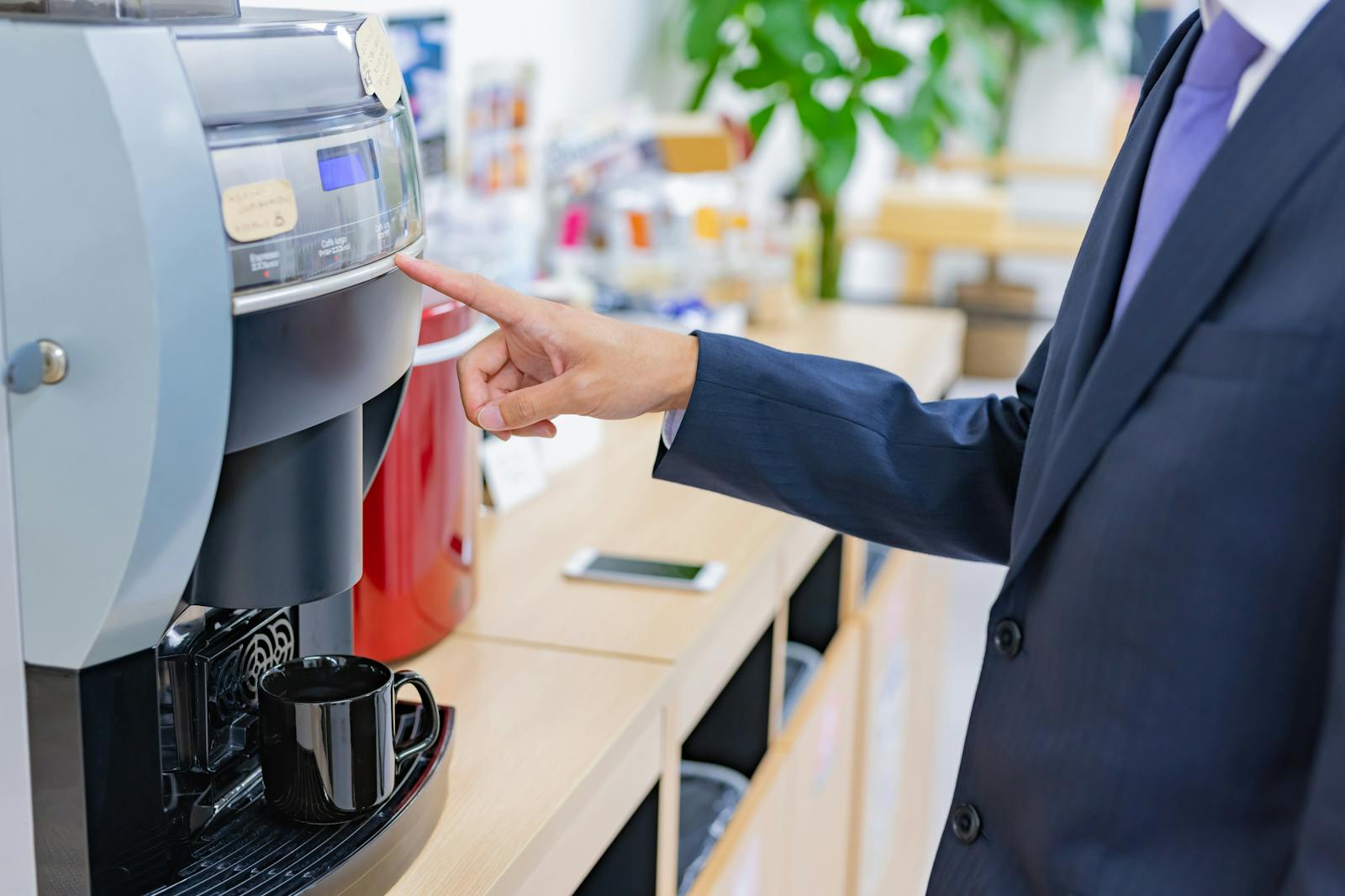設置するなら、コーヒーマシンやウォーターサーバーのほか、自動販売機なども定番です。必ずしも本格的なカフェスペースを用意する必要はなく、ちょっとした飲み物が手に入るだけでも利便性は大きく向上します。