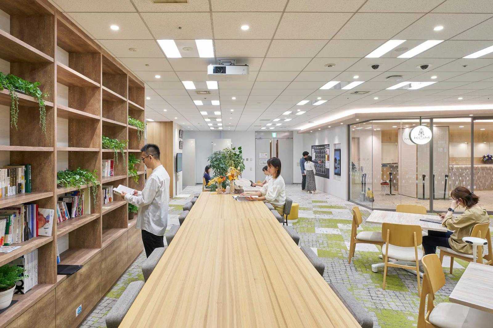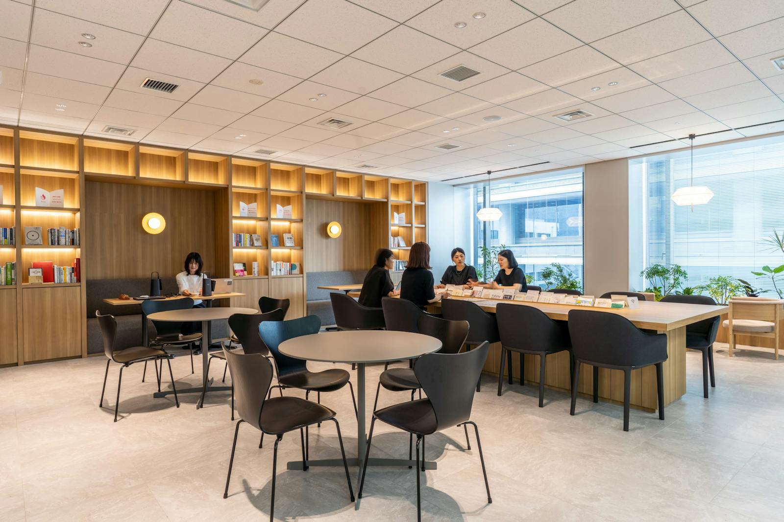 ブックラウンジにはキャリア形成に関する本などを設置し、社員が自身のキャリアについて考えられる場を提供しています。さらに、大きなテーブルやラウンジチェアなど多様なタイプの家具を配置することで、複数人でも利用しやすく、自然と会話が生まれる空間を実現しました。