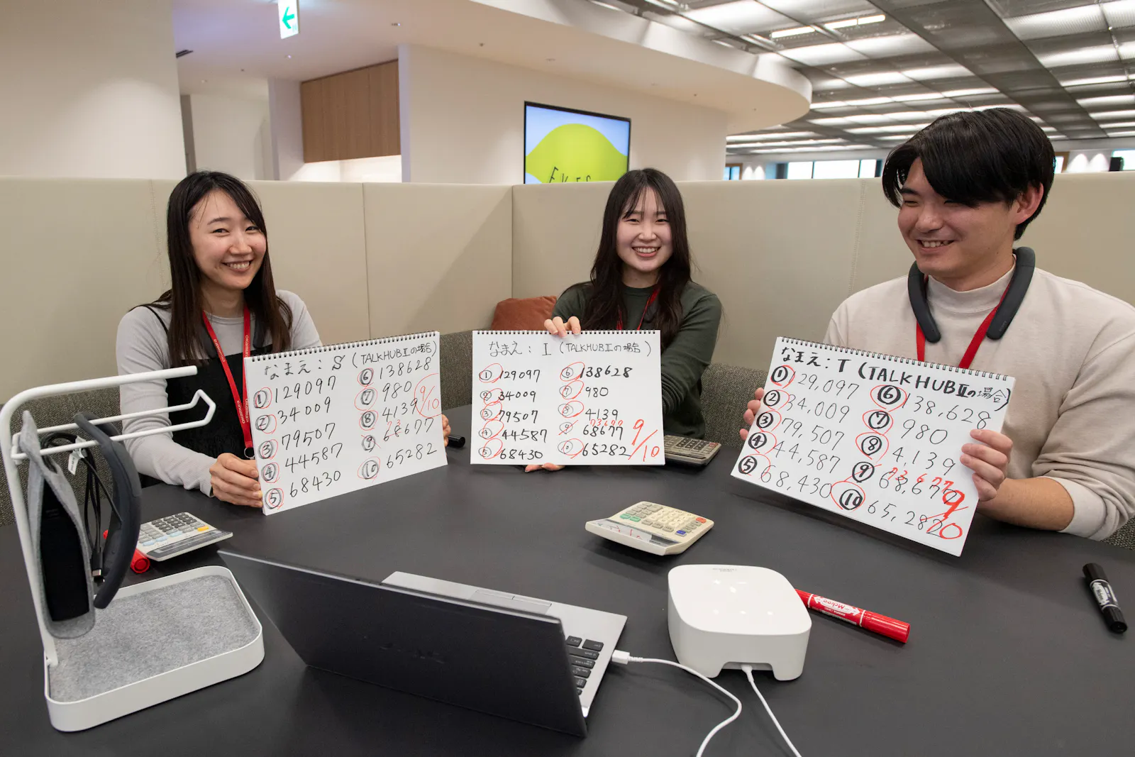 「TALKHUBⅡ」の検証結果は、正答率9割と最も高い結果となりました。検証途中でアラームが鳴ってしまい、全員が同じタイミングで同じ間違いをするというハプニングが発生。検証した3名のあいだで差が生まれることもありませんでした。