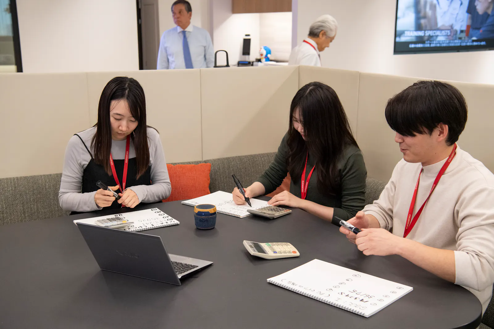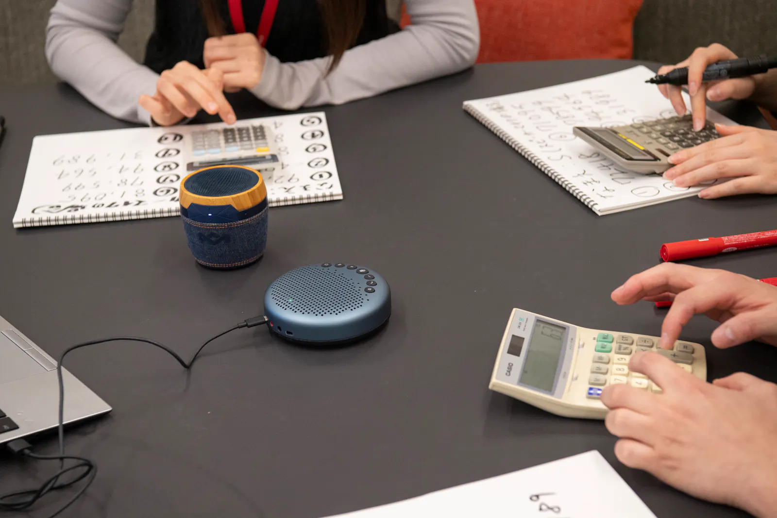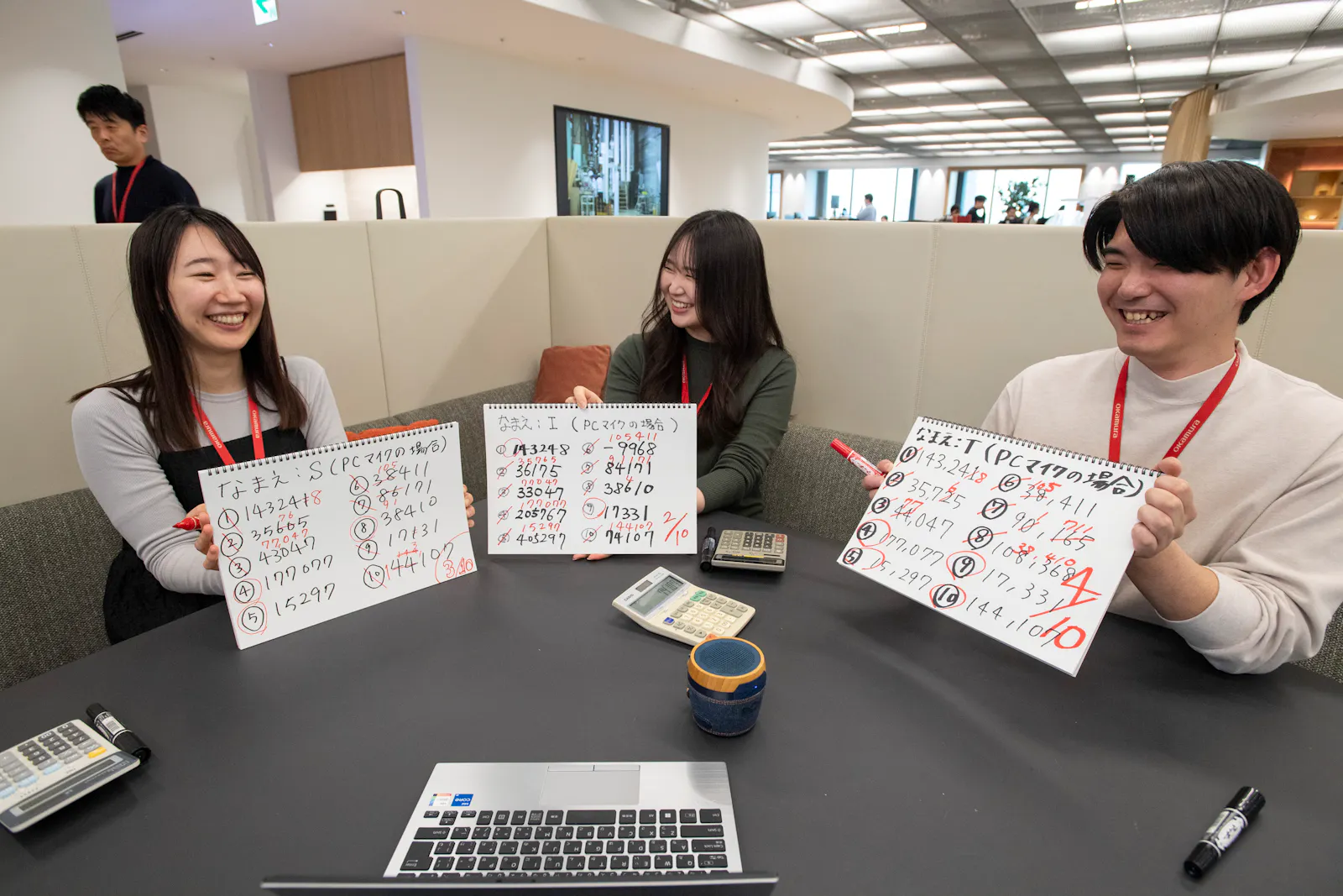 - 検証メンバーは、出題された問題を電卓で計算し、回答をスケッチブックに記録する