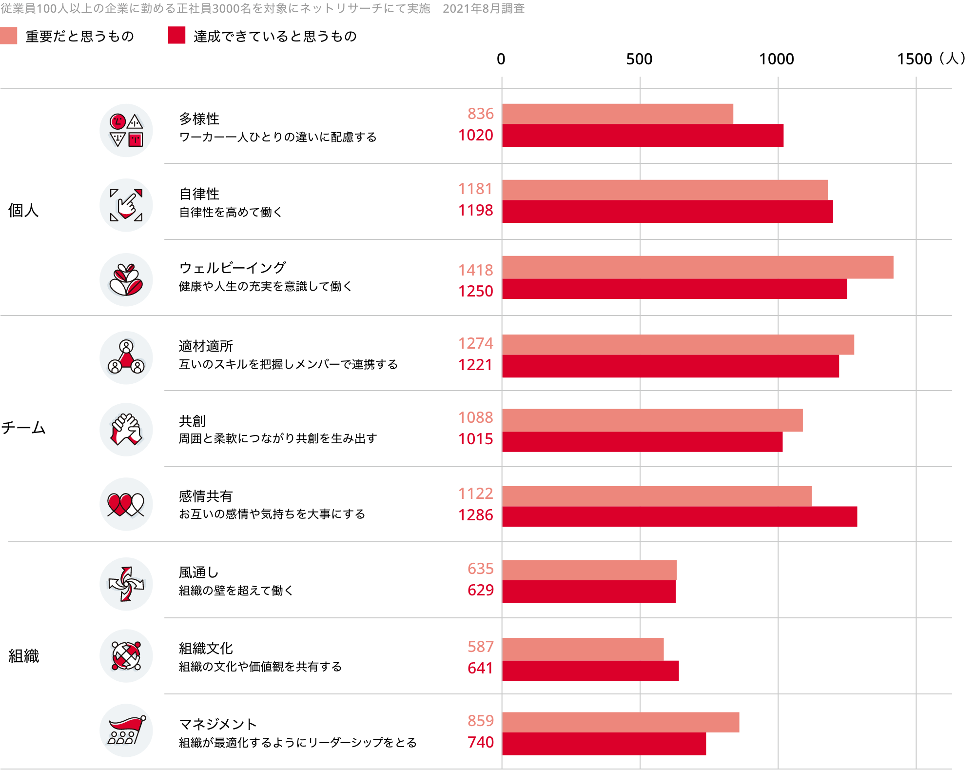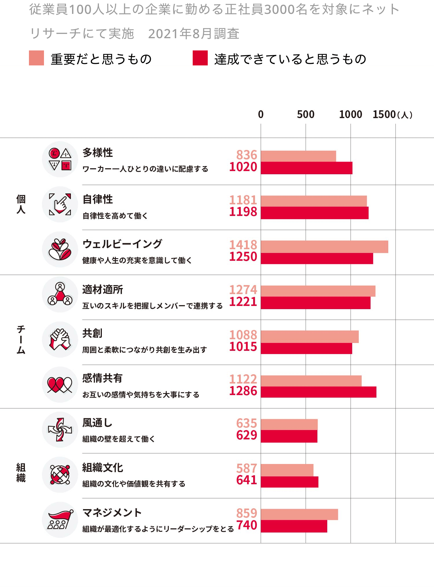 オフィスで過ごす時間が減り、変化を肌で感じるということができない状況で、「自分の組織は大丈夫だろうか」と不安を抱える従業員も増えています。そんな中、今まさに起きている大きな変化にもしなやかに対応できる組織であるために。明確なゴールに向かって価値観を共有し、組織の枠をも超えてつながり合うことが求められます。