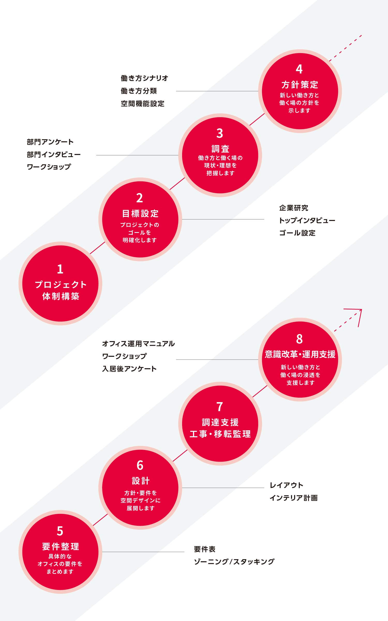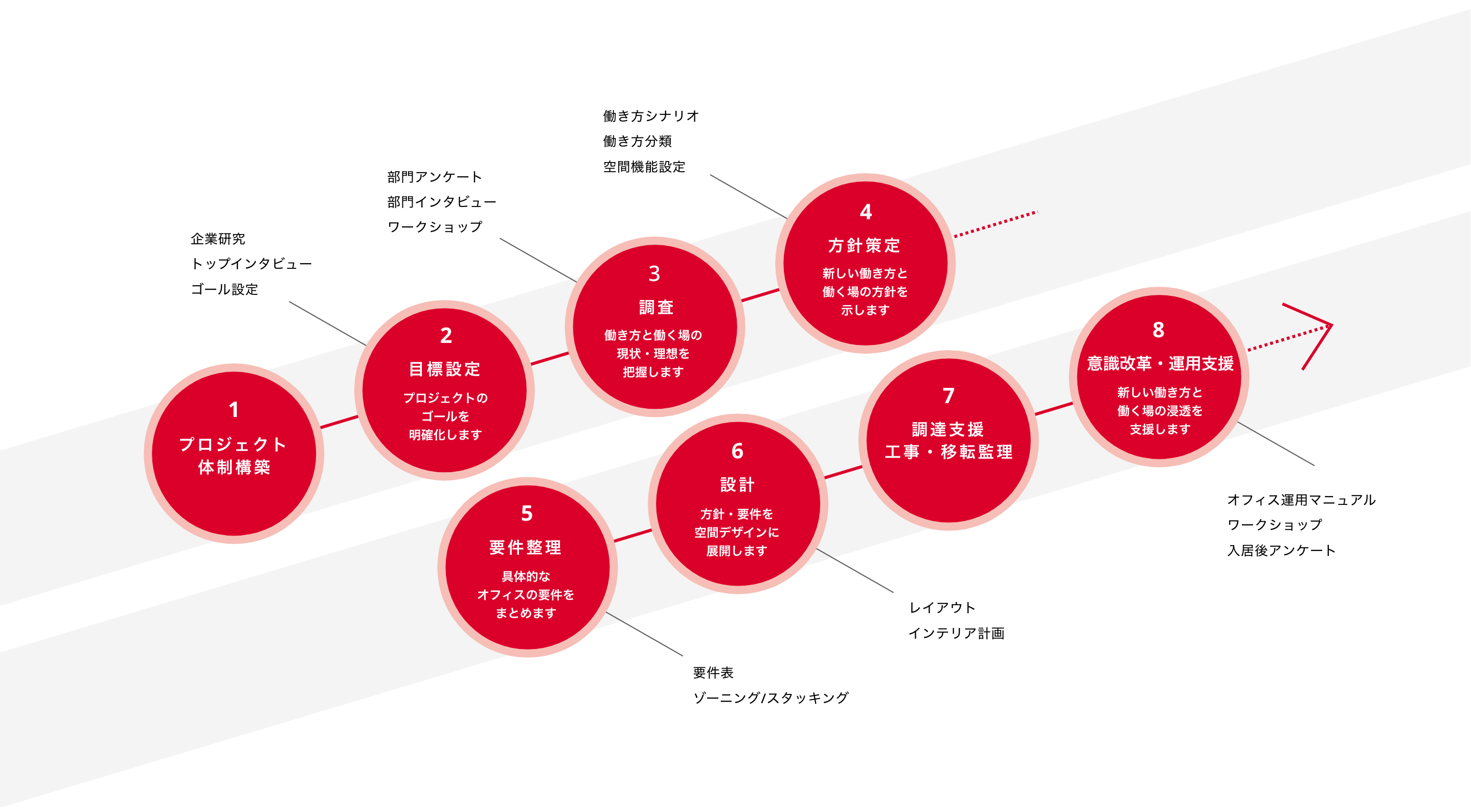 オフィスづくりの流れと実施項目例