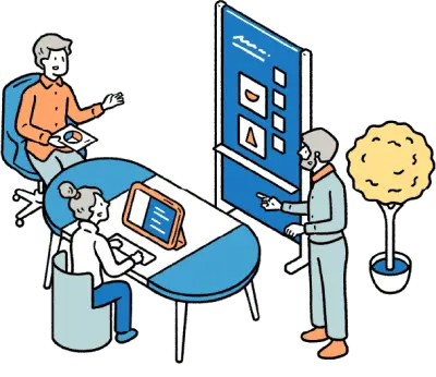一定期間プロジェクト単位で占有できるプロジェクトスペースがあれば、情報共有や共同作業が効率的に行えます。立ち会議や大型モニター、ホワイトボードなどの情報共有ツールを使いこなしましょう。