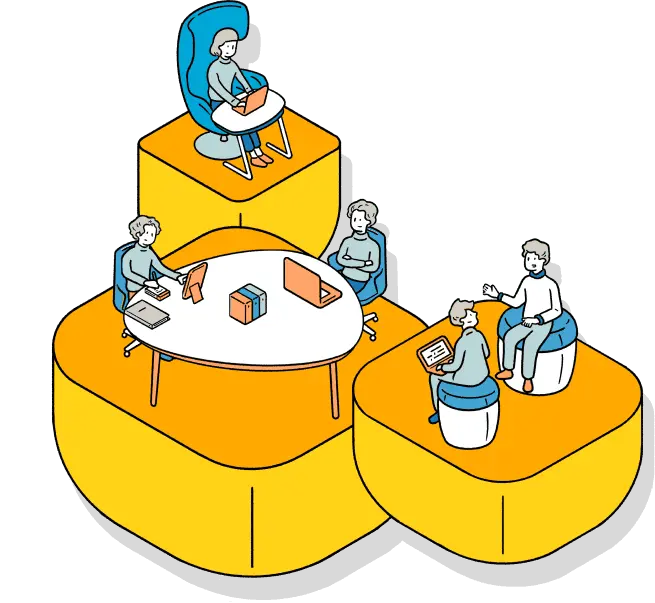 ワーカーがイロイロなタイプの座席から自分で選ぶアクティブなスタイル!