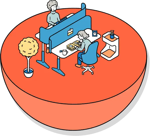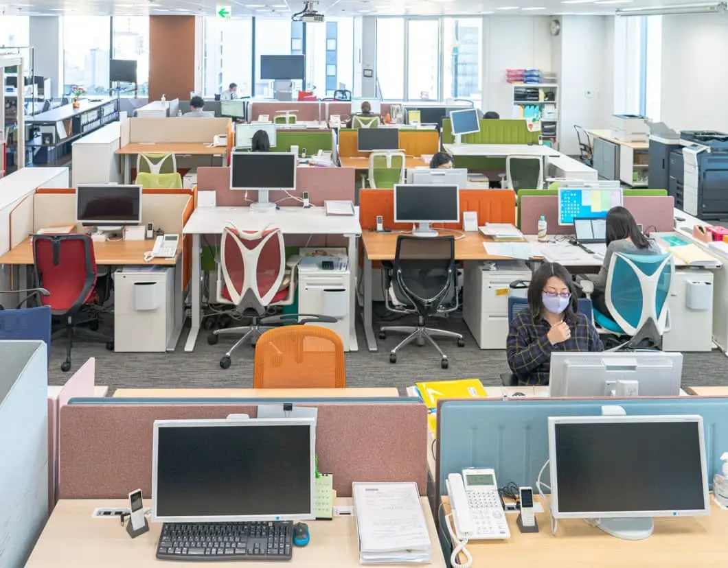 個々人の座席をしっかり確保するスタイル。ワーカーが業務に必要な資料や環境を保持できるため、オフィスでの作業が必須の業務にフィットします。