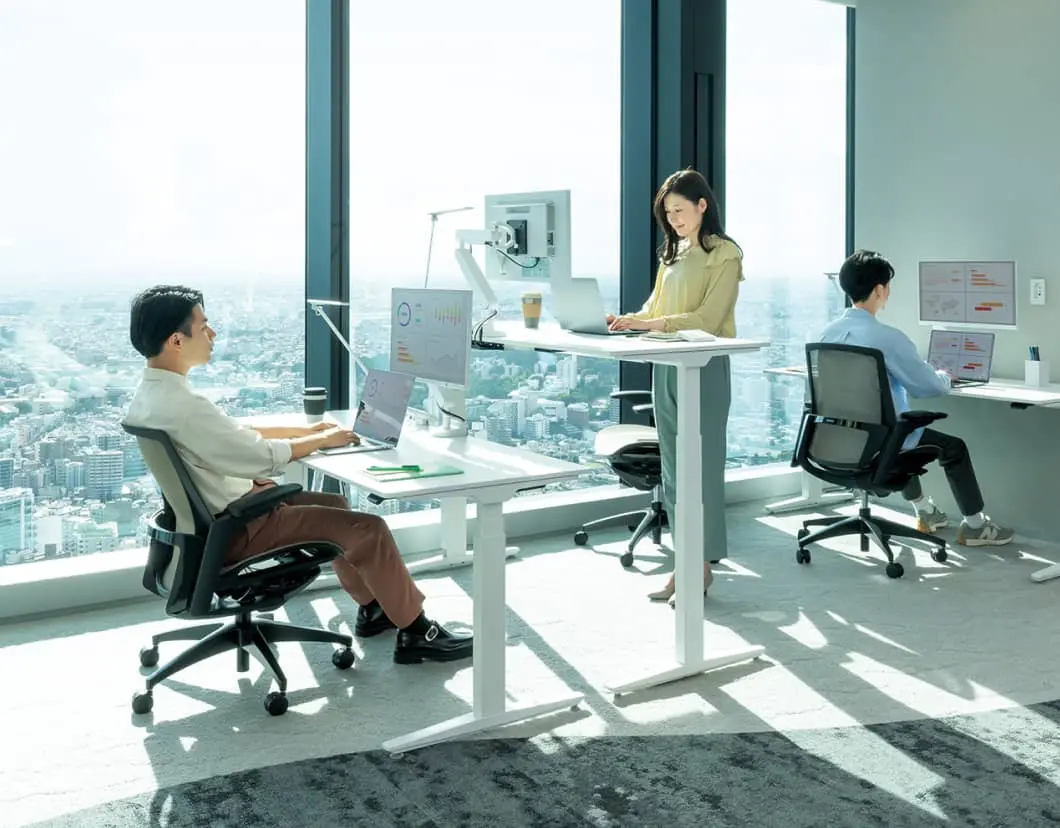 たとえば天板の高さが自在に変えられる上下昇降デスクや、背もたれの角度など多彩な調整ができるチェアにしてみませんか。姿勢だけでなく気分も変わり、からだとこころの健康に効果的です。