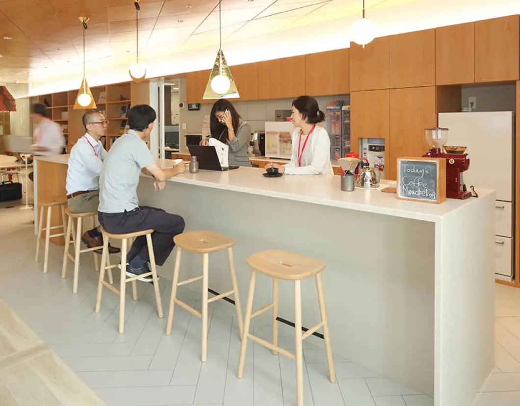 気分転換は自席から離れた「休憩するためのエリア」で行います。気兼ねなくリフレッシュでき、活動にもメリハリがつくため、業務への集中力にもつながります。