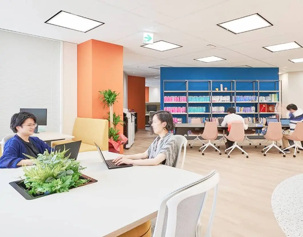 フリーアドレスで、かつ多様な環境から活動に合った座席を選んで働きます。
