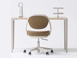 ホームインテリアに馴染むナチュラルなデザインのデスクとチェアです。自宅でのはたらき心地を考えて設計されています。デスクはシンプルで安全性に配慮された丸みのある形状、チェアはコンパクトながらも優しく包み込むようなしっかりとした座り心地です。