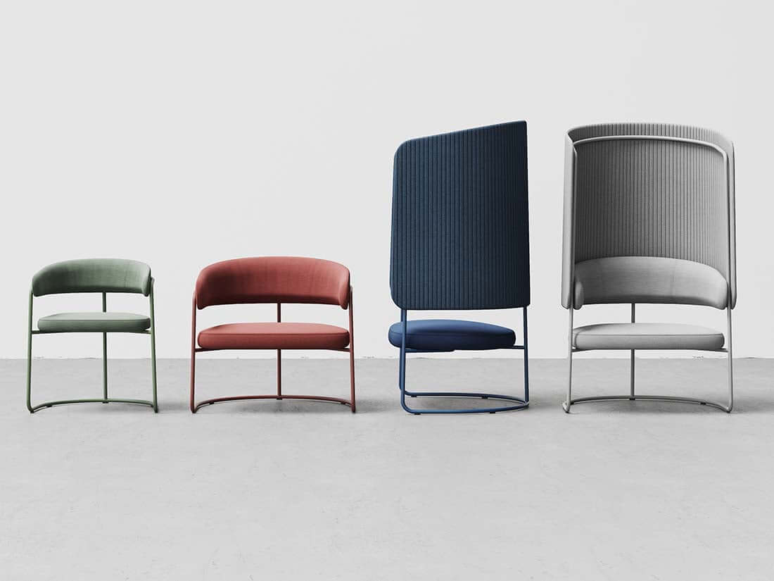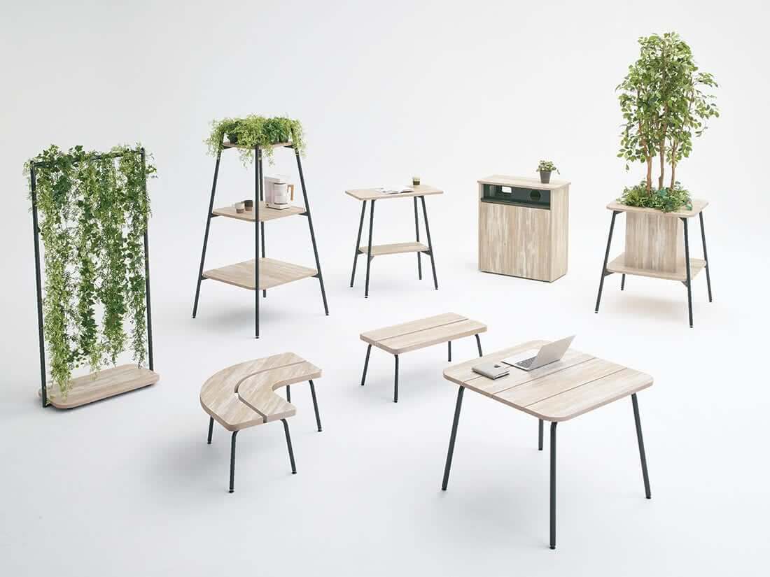 個性的な形状を組み合わせて存在感のある空間を作るロビーシリーズ。単体でも組み合わせでもシンボリックで人が集まる空間を演出できます。
