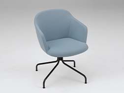 ワークブースとセットで提案できる、安価な回転機能付きのチェアです。高級感のある張りぐるみタイプで、柔らかな座り心地を提供します。回転機能により、狭いブース内でも出入りが容易です。