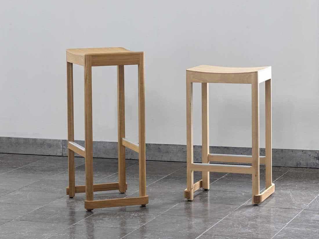 無垢材を用いたシンプルなデザインの『アトリエ バースツール』は、職人の精巧な技術と研究によって生み出されました。