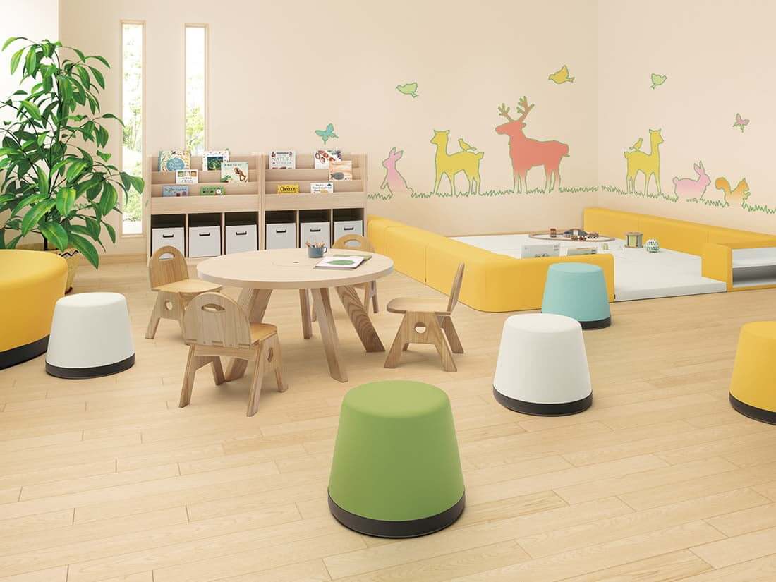 来院した子どもの緊張を和らげるような、親しみやすく遊び心のある空間を演出するロビーシリーズです。また大人と子どもが一緒に安心して使えるよう、安全性に配慮しています。