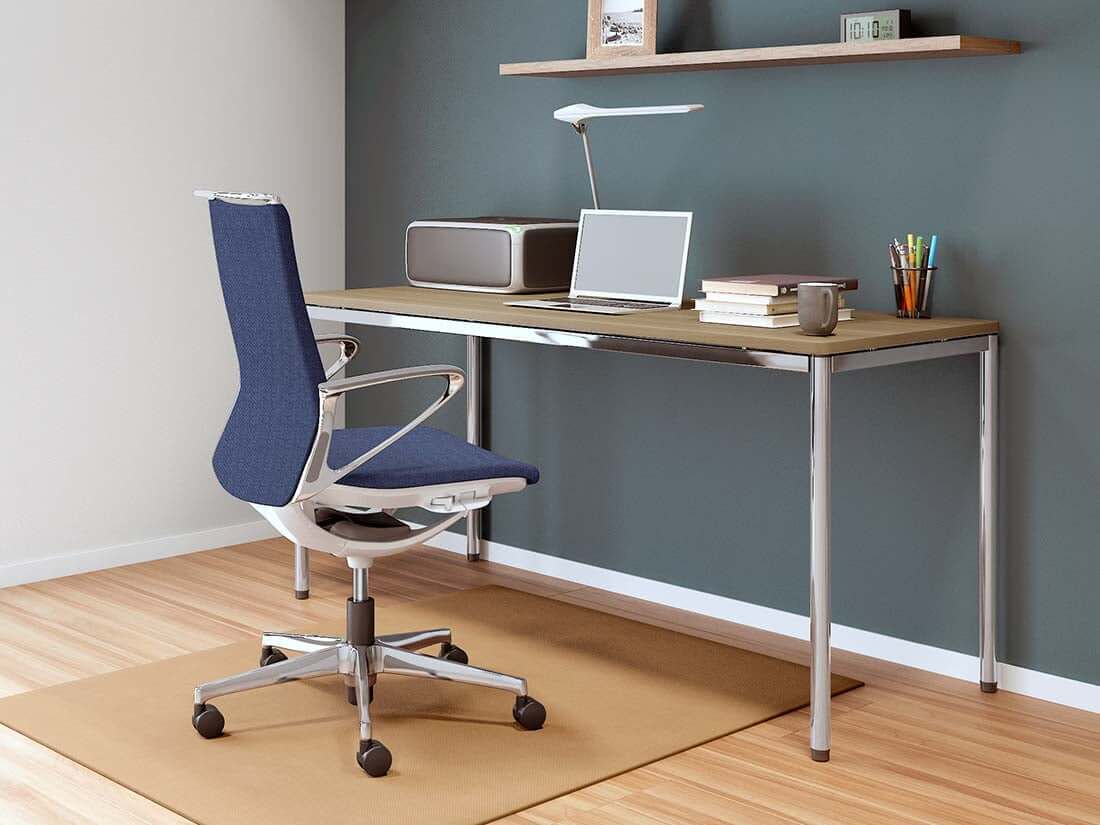 配線機能を備えた、在宅ワーク向けのスタンダードなデスク。軽やかでシンプルなデザインで、部屋のインテリアに自然に溶けこみます。