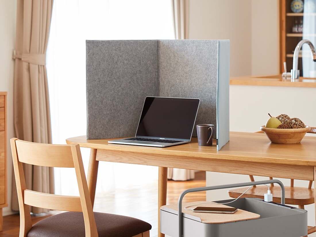 ツートンでリバーシブルに使える、軽量で折りたたみ可能なパネル。集中しやすい環境を作ることができます。フロアタイプは頭まで隠れる高さなので、ちょっとした集中ブースにも。