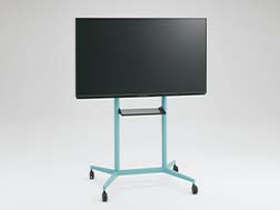 前後ダブル画面の装着が可能なモニタースタンド。1台のスタンドで2台のモニターを設置でき、人が集まる空間でのスペースの有効活用に役立ちます。
