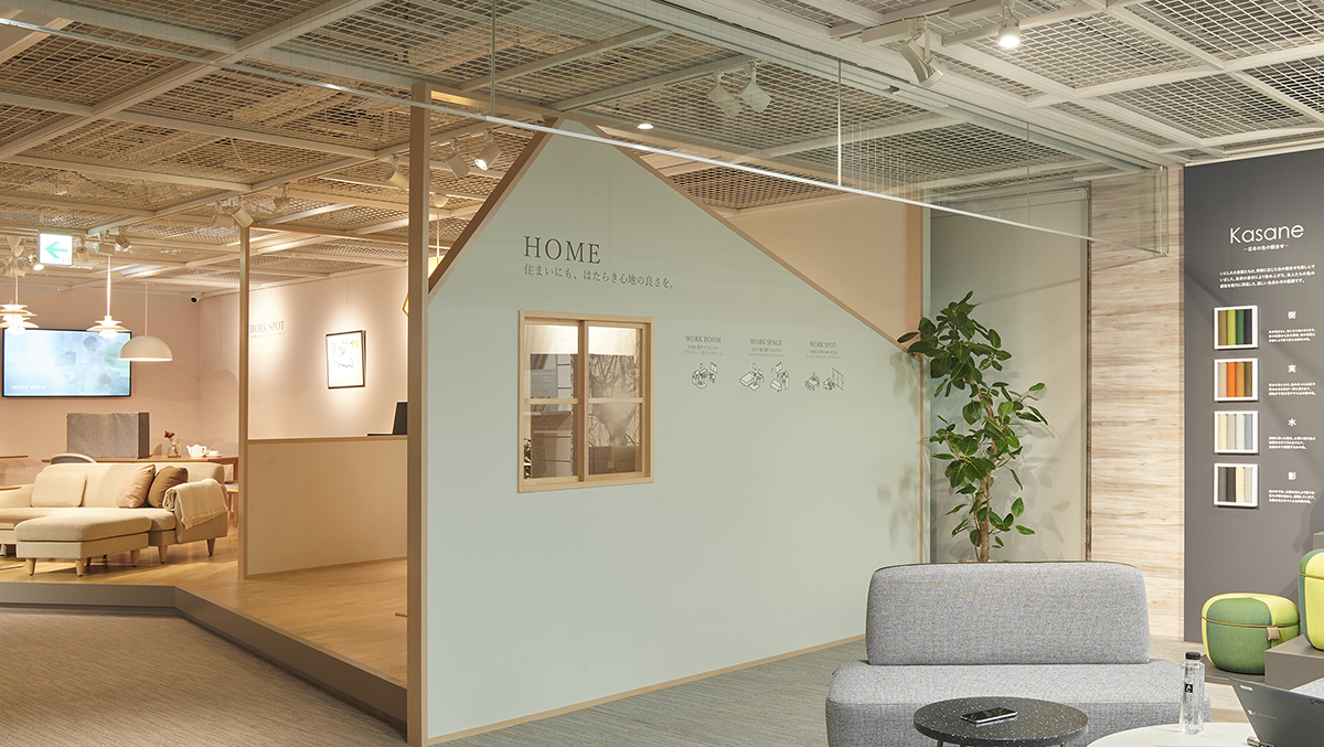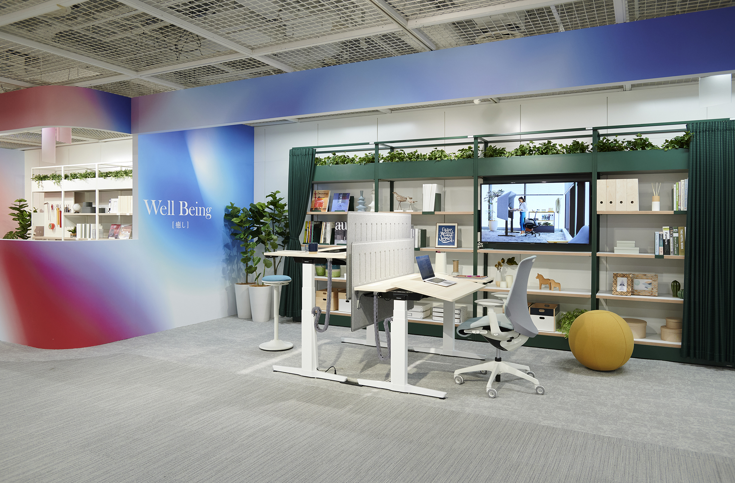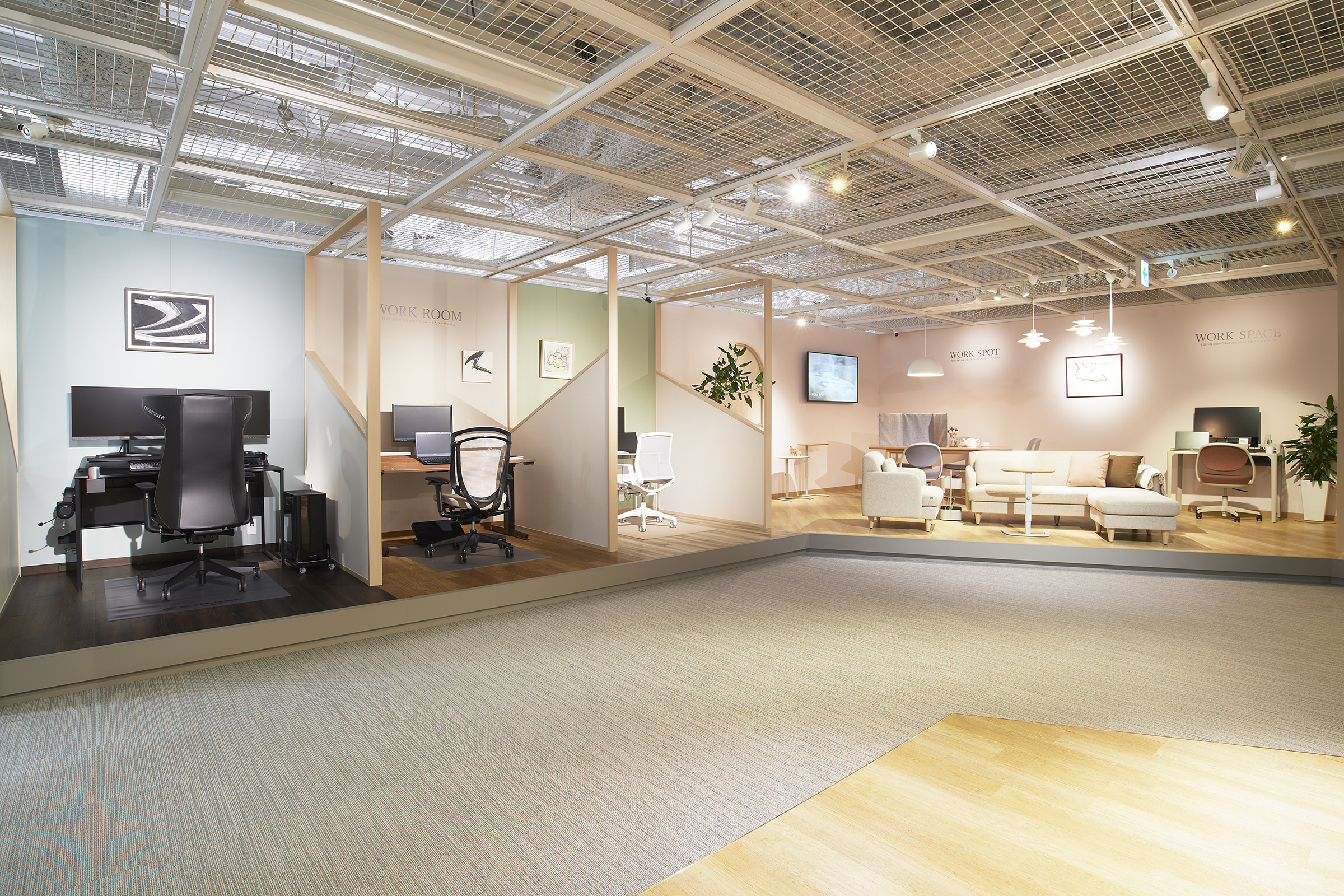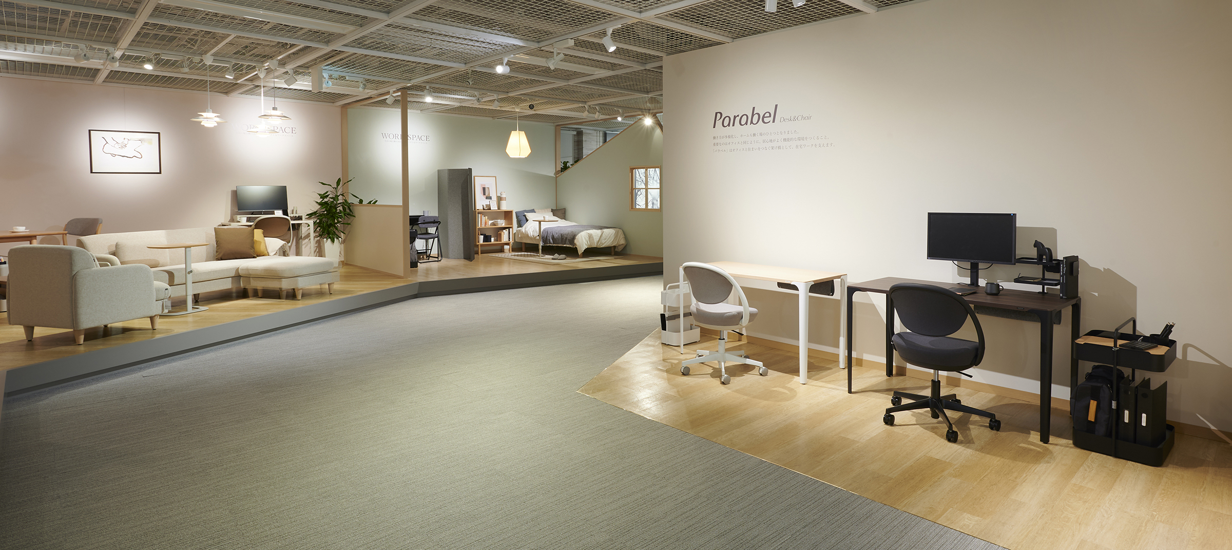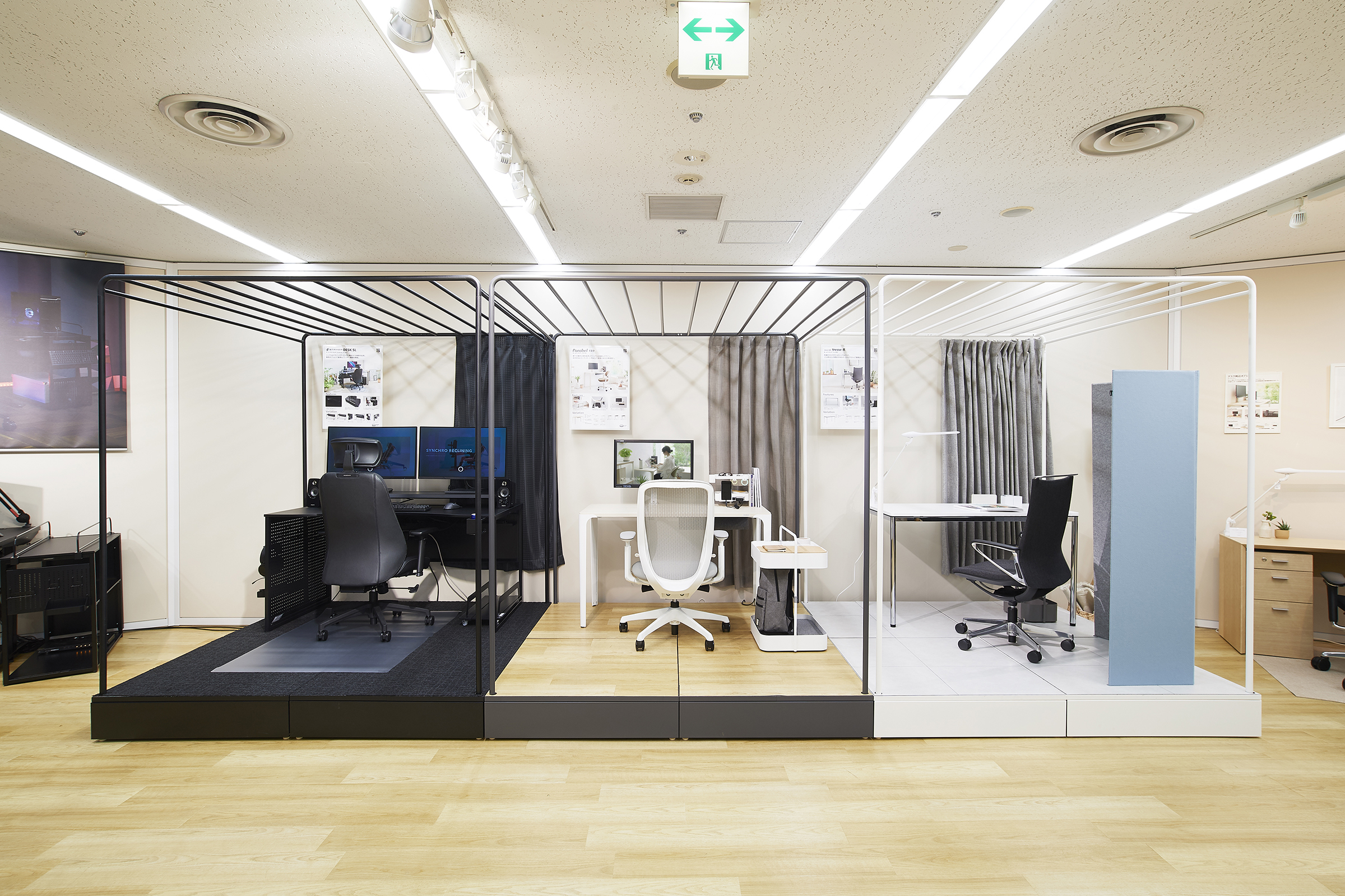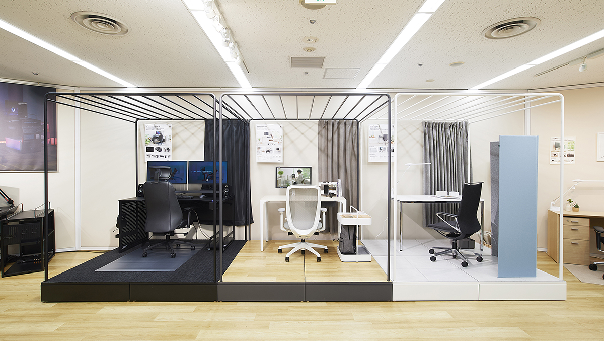 居⼼地が良く、機能的と感じられる働く場をつくるための、さまざまな在宅ワーク用家具を展示しています。